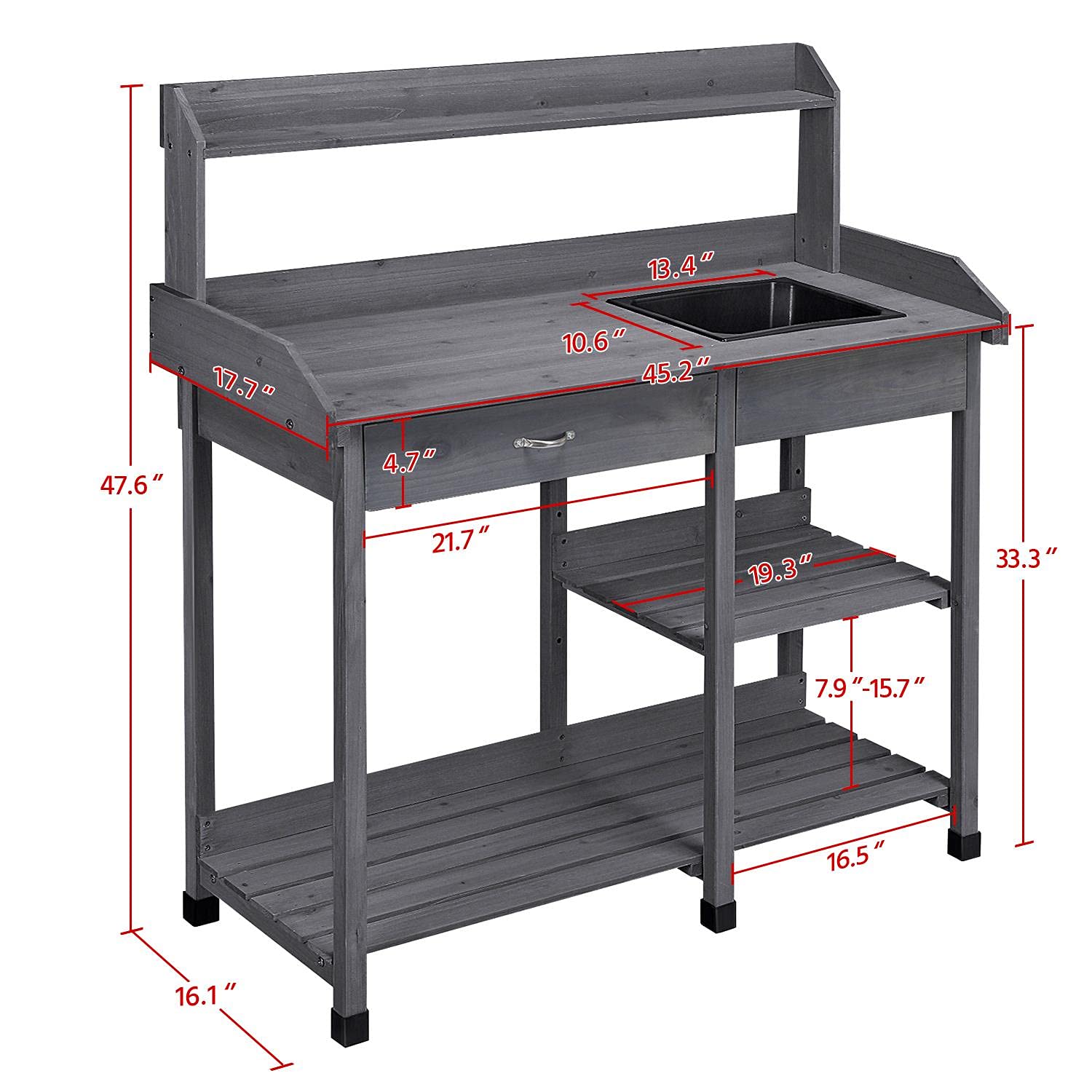 Yaheetech Outdoor Potting Bench Table Potters Benches Garden Workstation for Horticulture with Drawer/Adjustable Shelf Rack/Removable Sink/Hooks/Pads, Gray