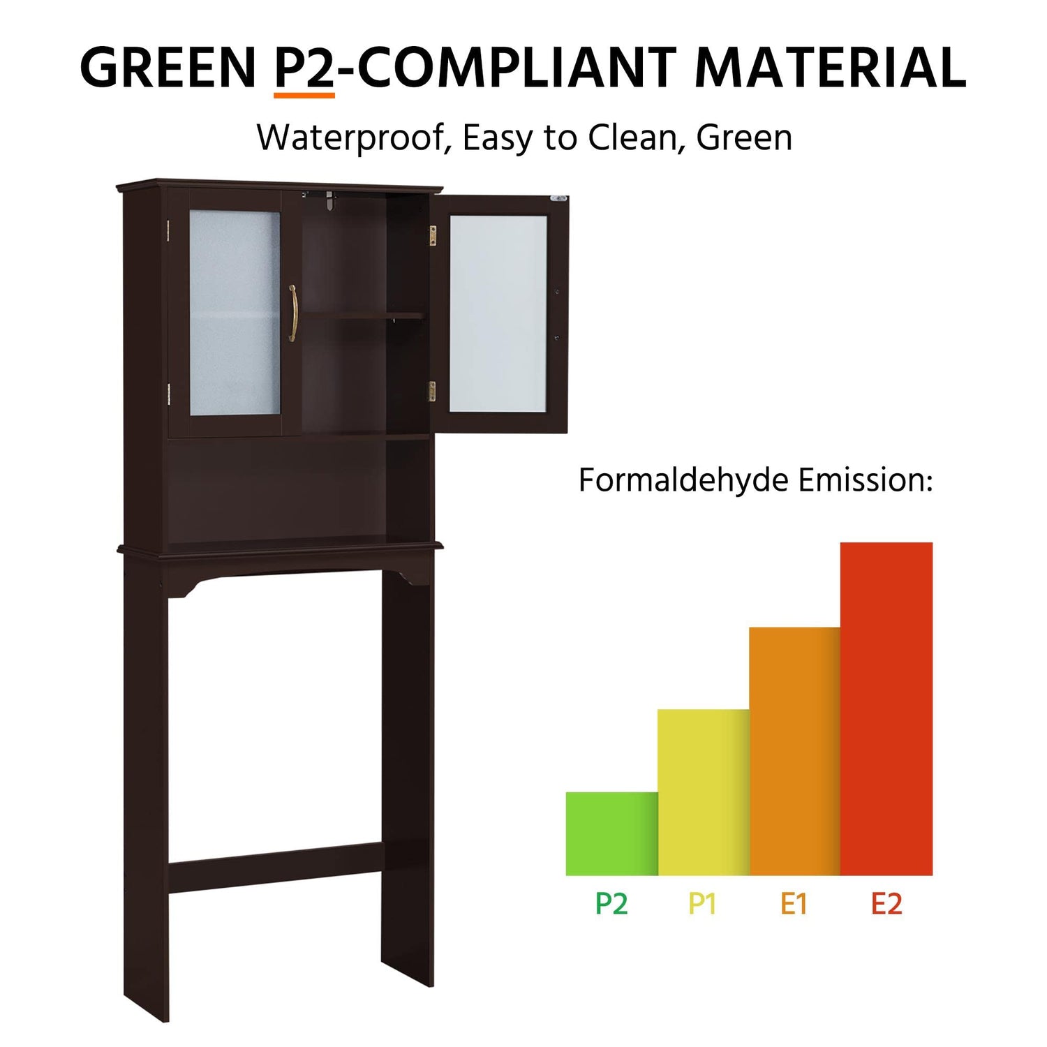 Details: Yaheetech Over The Toilet Storage Cabinet, Free Standing Toilet Rack with Adjustable Shelves and Tempered Glass Doors for Bathroom Washroom, Espresso