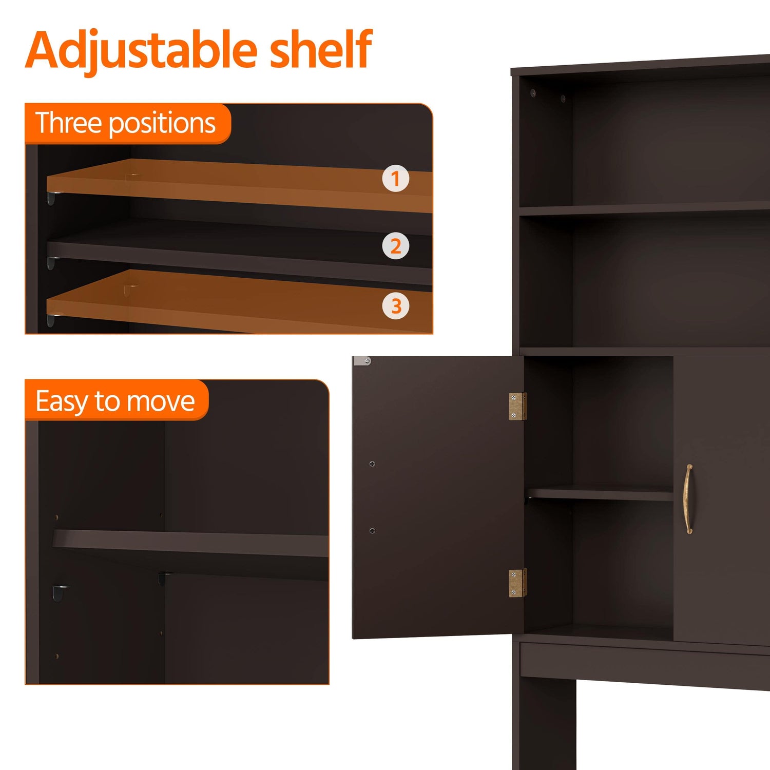 Yaheetech Over The Toilet Storage, Taller Bathroom Organizer Space-Saving Storage Cabinet with Adjustable Shelves and Double Doors, 77 in H, Espresso
