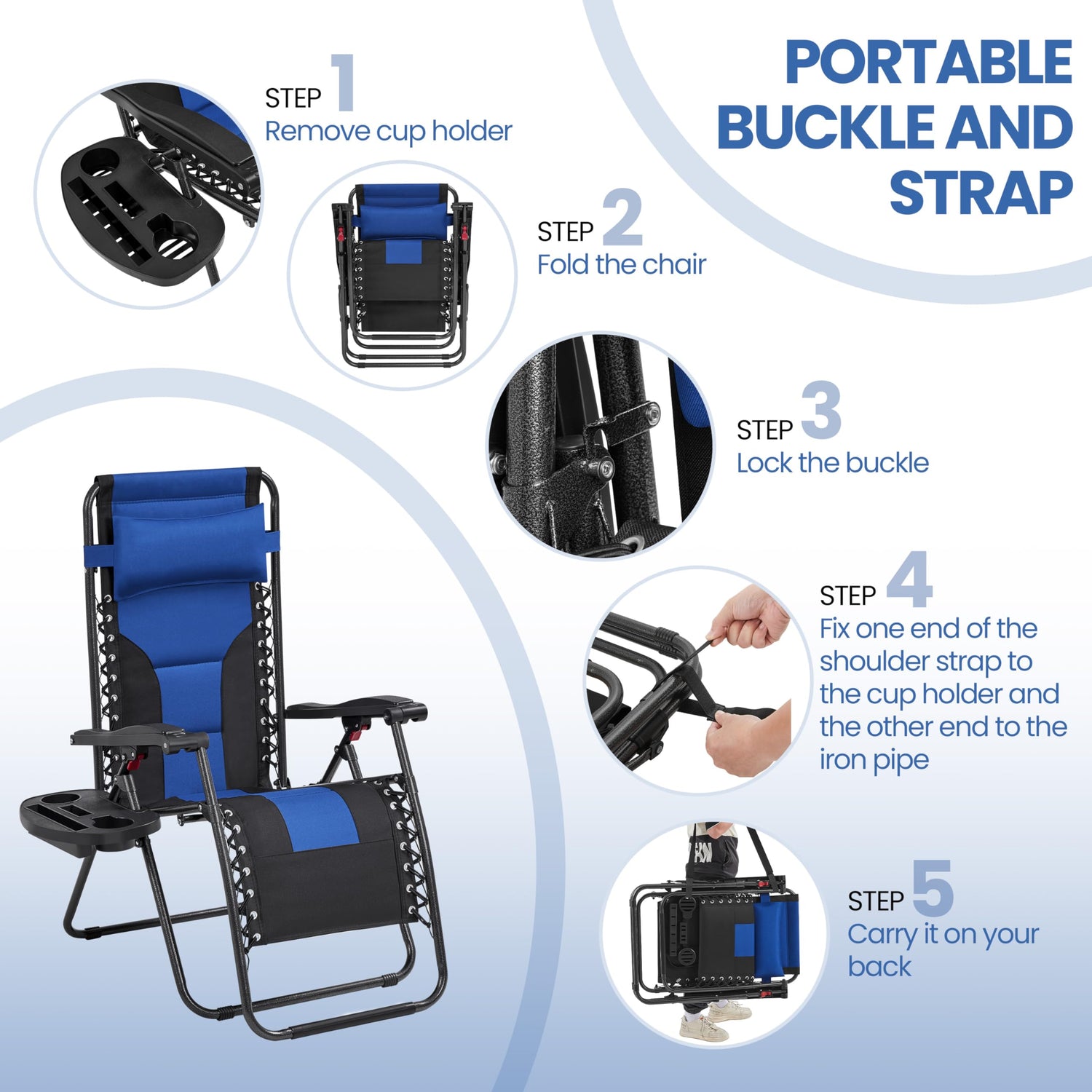 - Robust Construction: The heavy-duty pained steel support frame, featuring high hardness and lightweight, is designed in a triangle structure when it is unfolded, capable of holding up to 136 kg/ 299 lb. Whether you sit with the backrest upright or lie down when it is in zero gravity modes, this construction ensures your safety and stability
