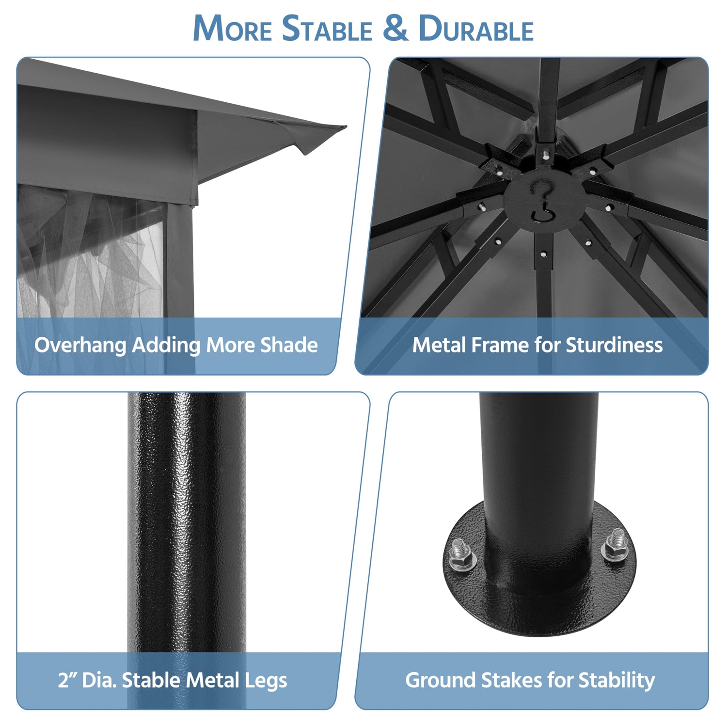 - Mesh for Protection: Hang the four mesh sidewalls around the gazebo to keep the annoying intruders at bay. With a meshed vented top, the gazebo will provide a comfortable outdoor space for you and your guests