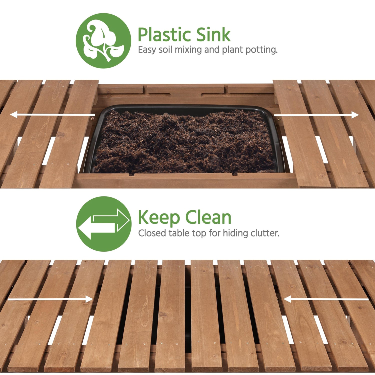 Yaheetech Potting Bench Table Outdoor Garden Horticulture Wooden Workstation Benches w/Sliding Tabletop/Removable Sink/Storage Shelf for Patio, Garden Furniture Wood Workstation,Brown