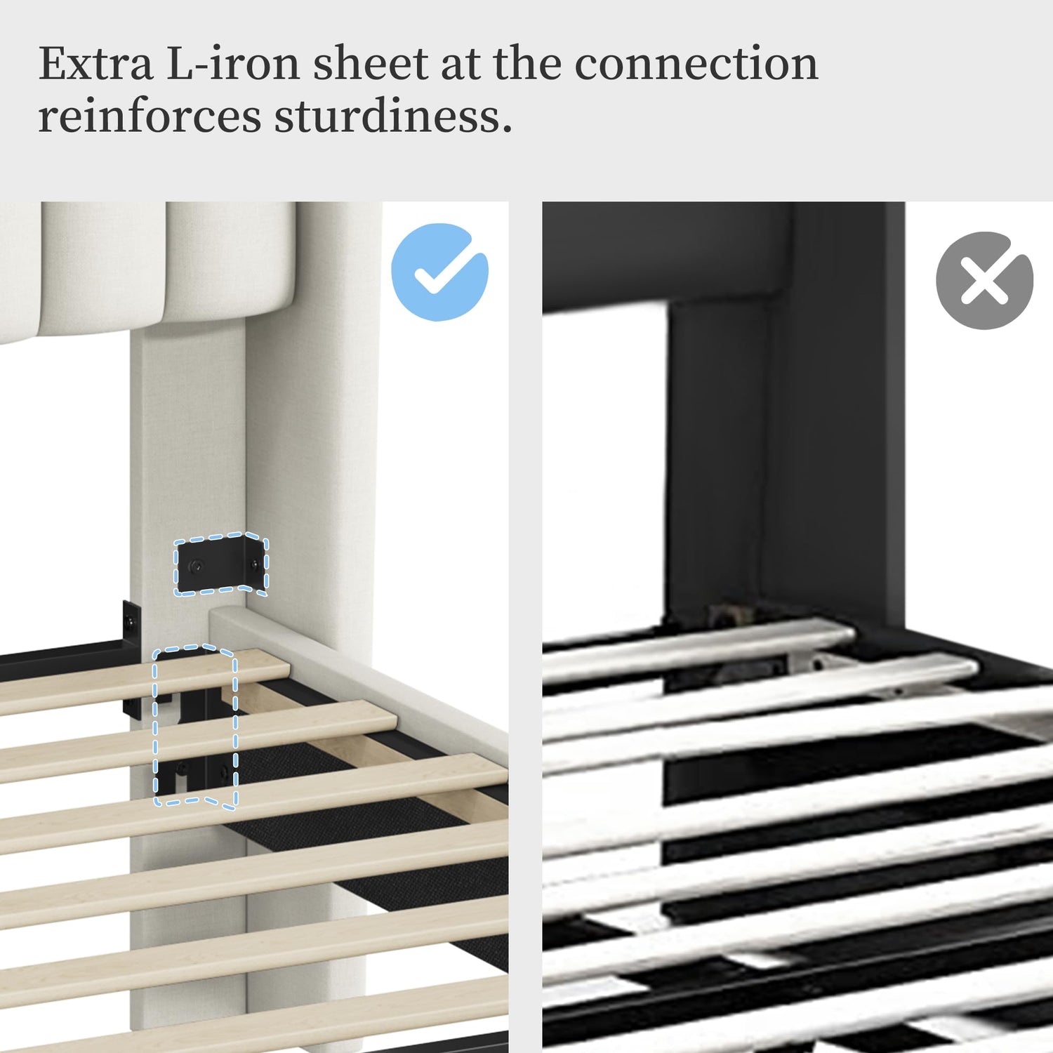 - Sturdy Wood-Metal Construction: Interior metal framework, 12 pieces of durable wood slats, and dense foam-padding border increase the comfort and durability of this queen upholstered bed with wing design. With a maximum weight capacity of 800 lbs.