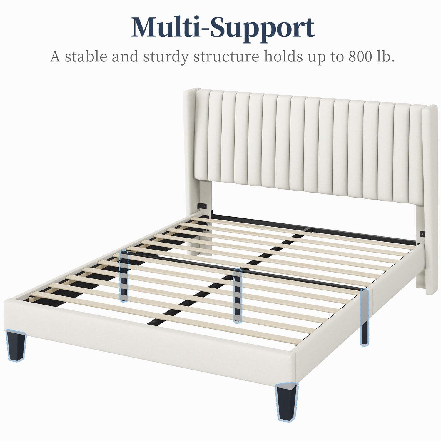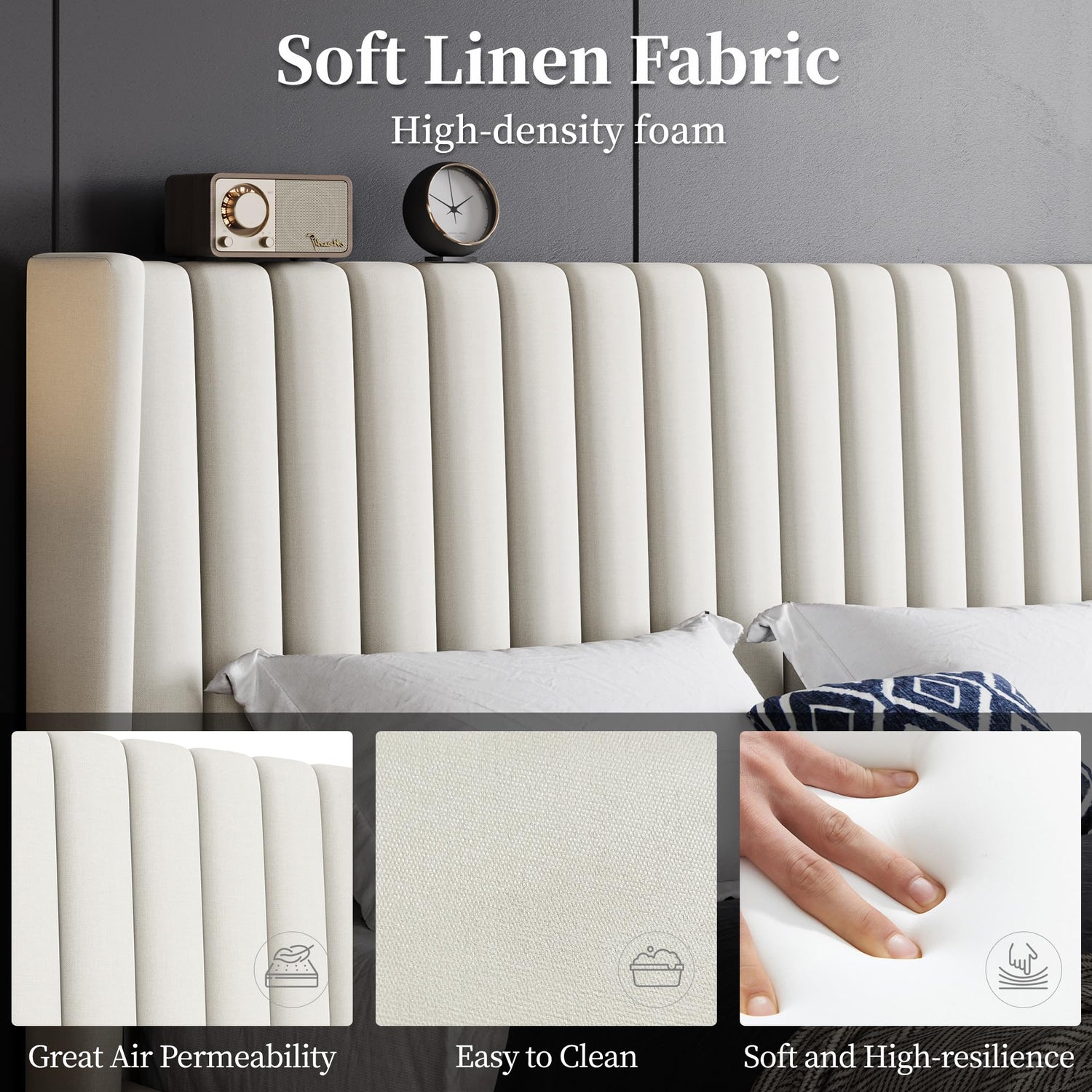 - Classic Design: Classic simple geometric wing side style, channel headboard, and skin-friendly linen fabric, the queen upholstered bed frame is a stunning decor for your bedroom furniture, seriously upgrading your room's aesthetic.