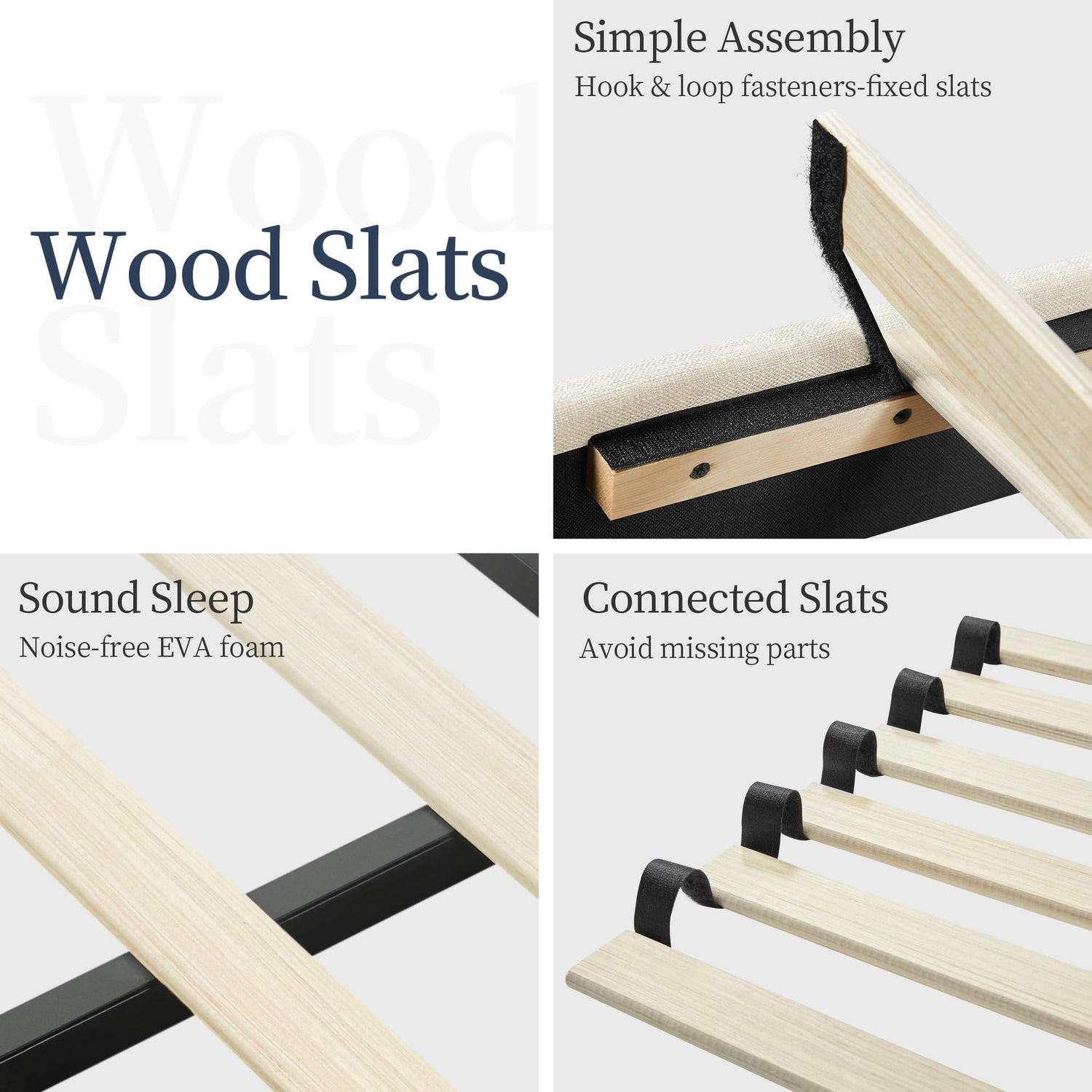 - No Box Spring Needed: Require no bulky box spring or extra foundation. After assembling the upholstered platform bed with headboard, just put your latex, foam or spring mattress on the wooden slats, and everything is all set.