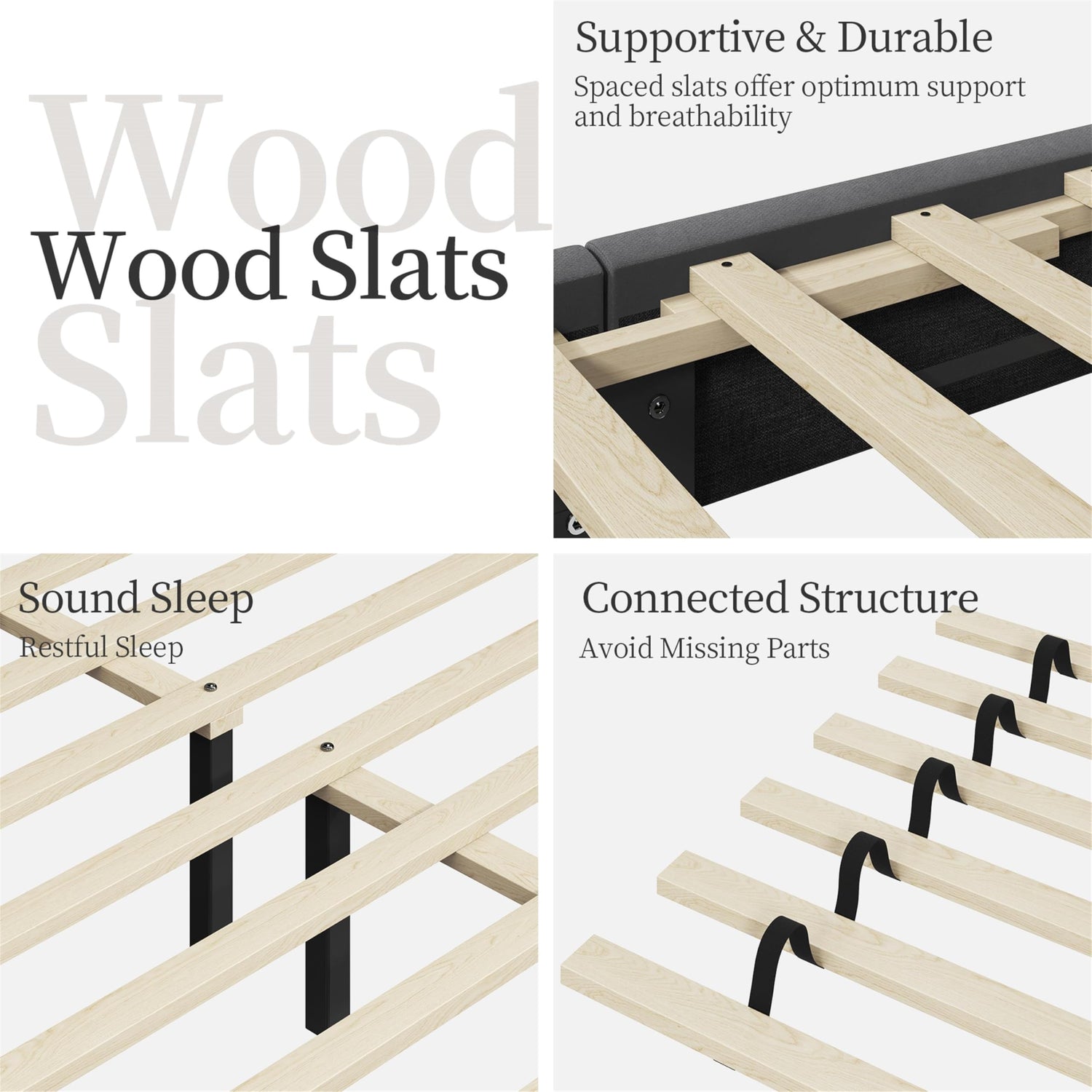 - Sturdy Wood Construction: Interior solid wood framework and robust support feet, 12 pieces of durable wooden slats, and a dense foam-padding border increase the comfort and durability of this queen bed frame with wing design. With a maximum weight capacity of 800 lbs