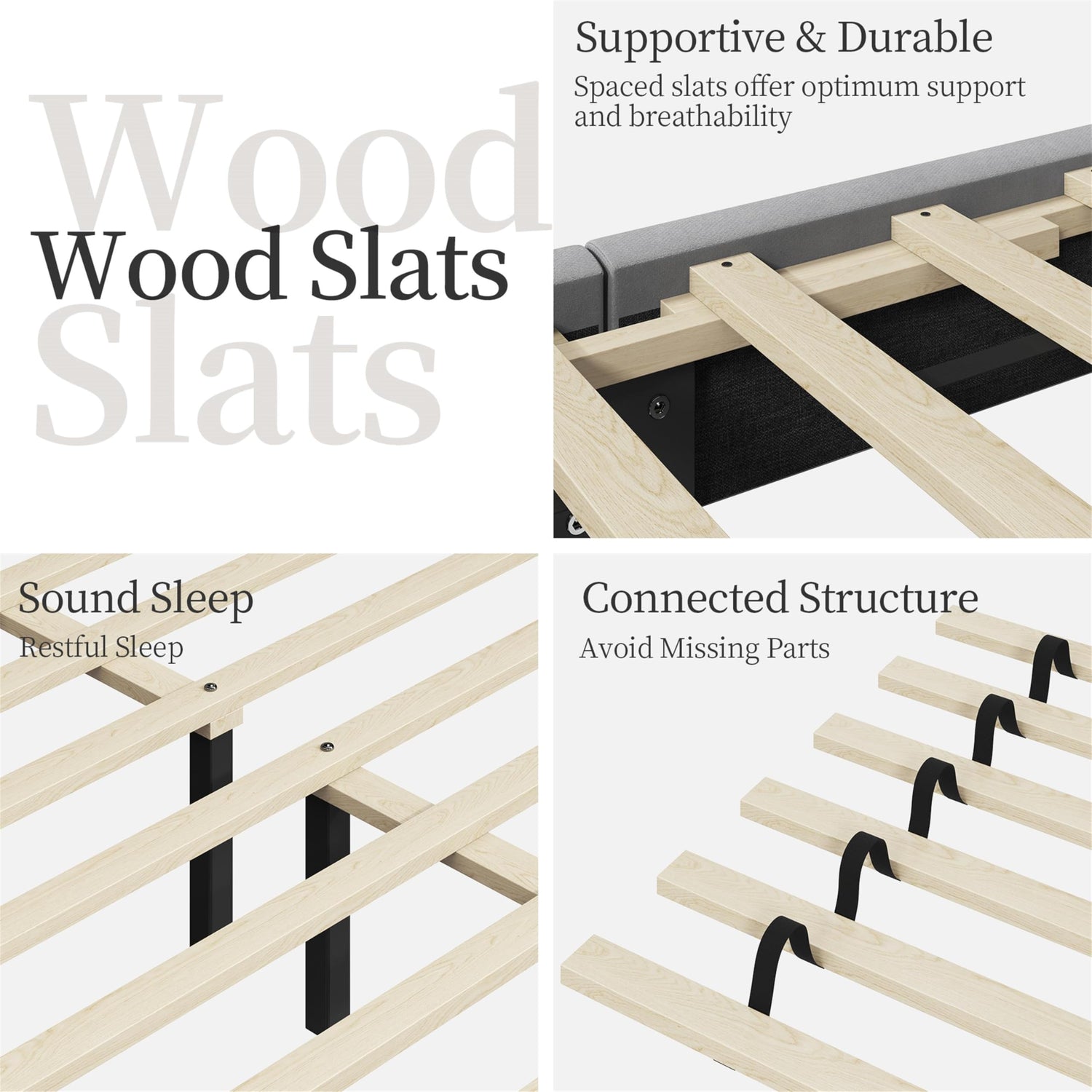 - Sturdy Wood Construction: Interior solid wood framework and robust support feet, 12 pieces of durable wooden slats, and a dense foam-padding border increase the comfort and durability of this queen bed frame with wing design. With a maximum weight capacity of 800 lbs