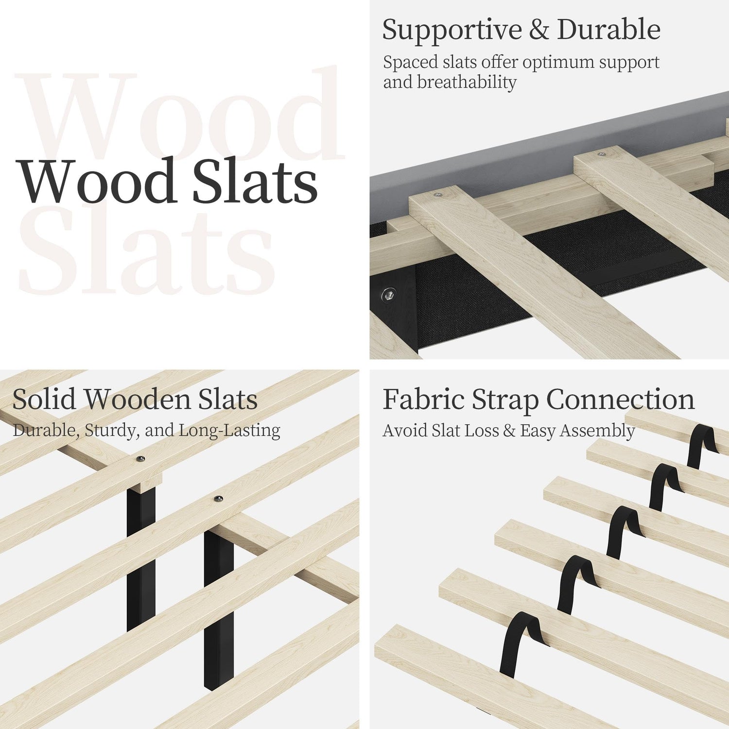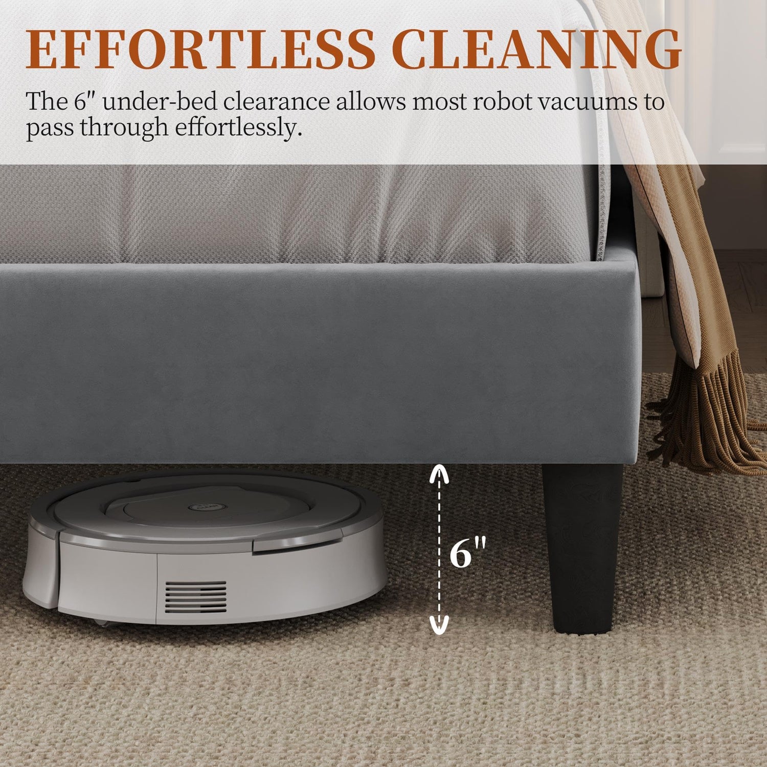 - Effortless Cleaning: With an under-bed space of 6″, future dust cleaning will be a breeze. Cleaning robots can pass through freely, making the task of cleaning this gray bed frame queen with wooden slats effortless for you