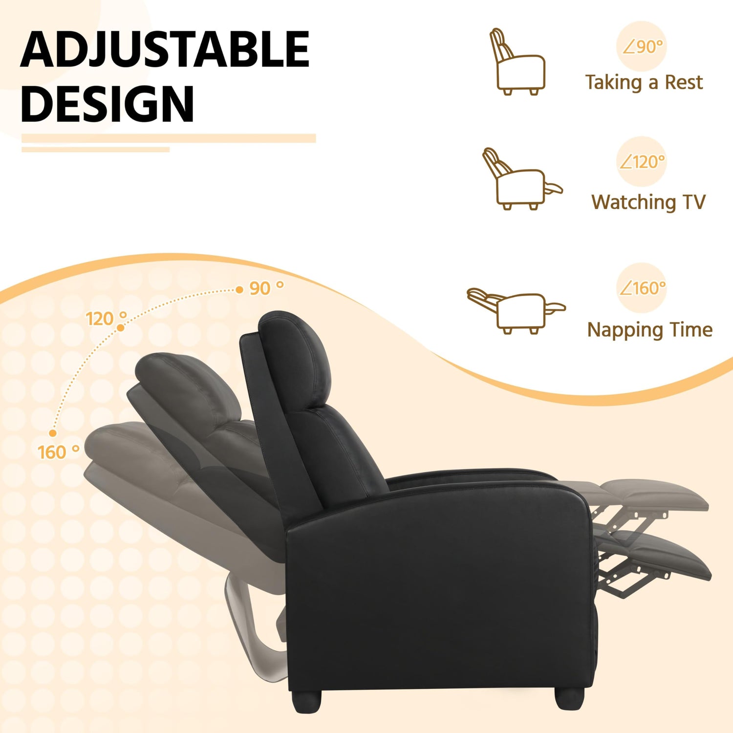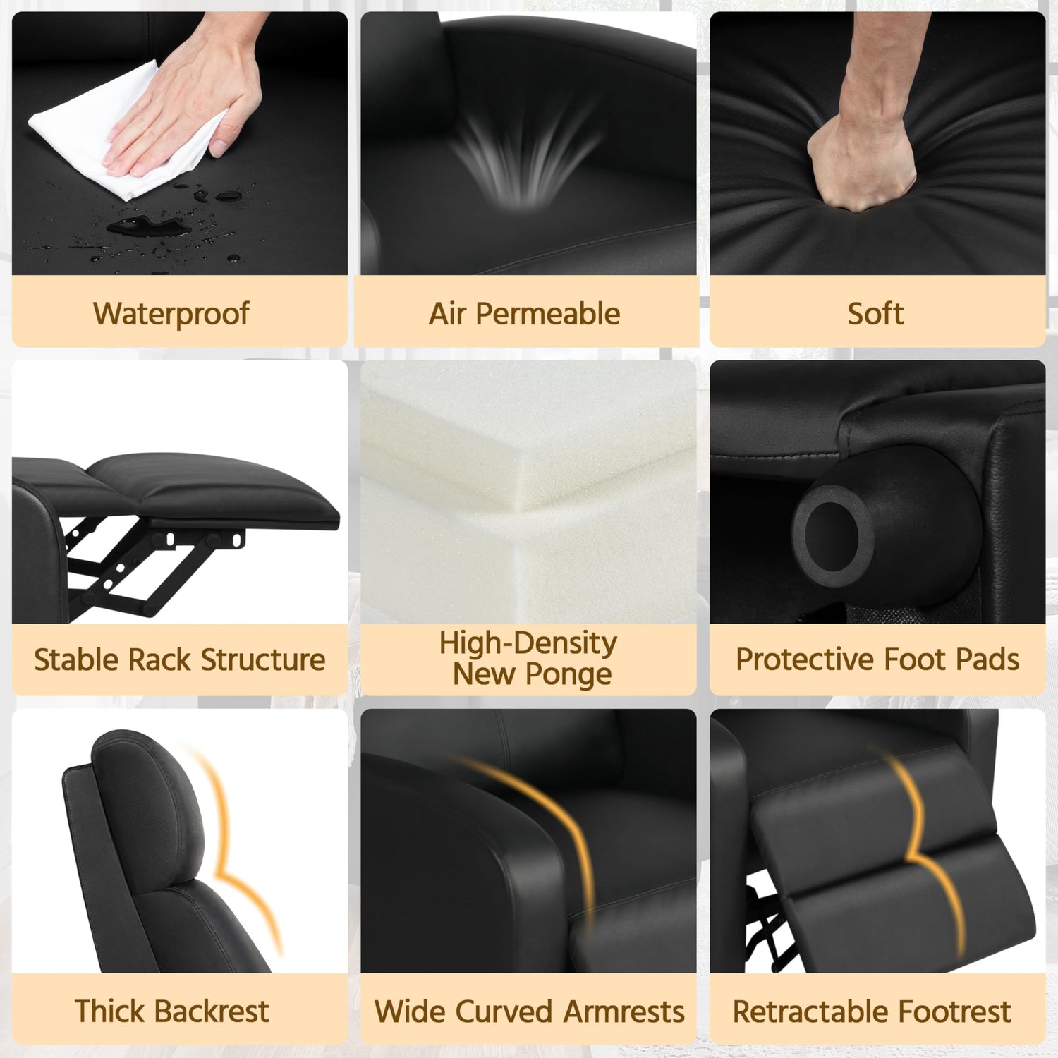 Yaheetech Recliner Chair PU Leather Recliner Sofa Home Theater Seating with Lumbar Support Overstuffed High-Density Sponge Push Back Recliners Armchair for Living Room