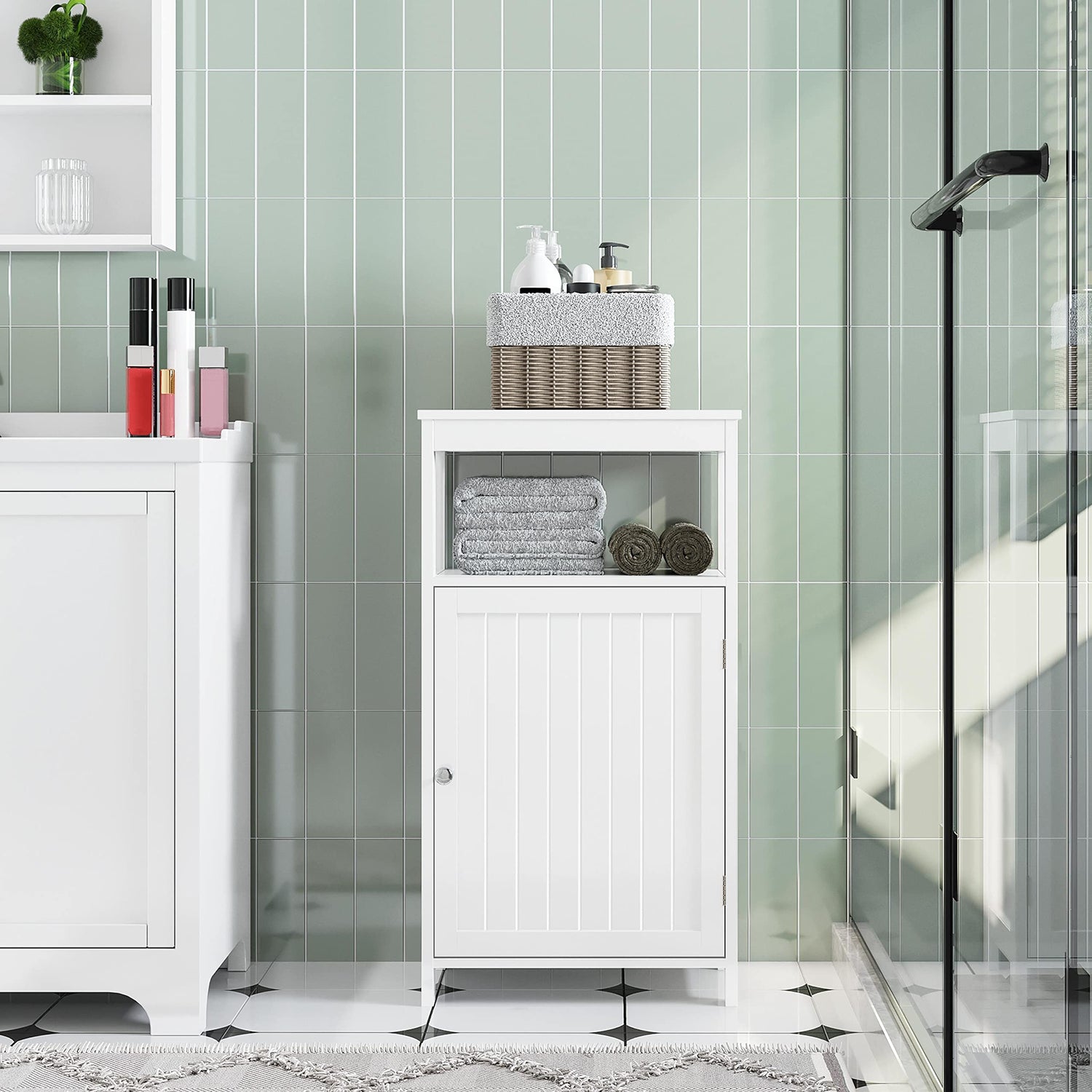 Yaheetech Single Door Floor Cabinet, Bathroom Free Standing Storage Organizer with Adjustable Shelf, Narrow Side Cabinet for Living Room, White