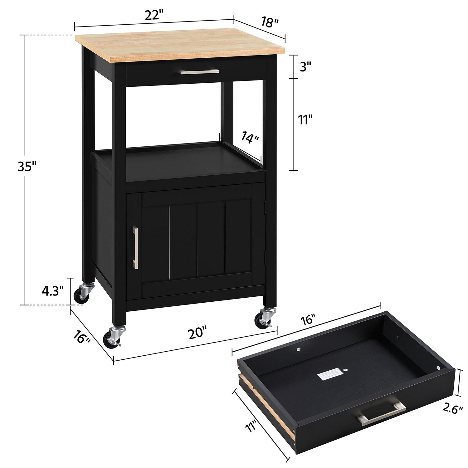 Yaheetech Small Kitchen Island on Wheels with Wood Top and Drawer, Trolley Cart with Open Shelf and Storage Cabinet for Dining Room, 22x18x35 Inches, Black