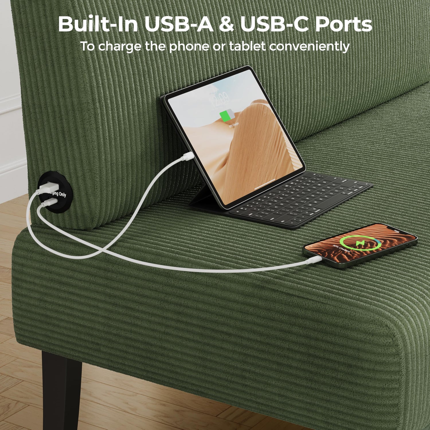 - Convenient Charging: The USB-A and USB-C ports of this small loveseat offer up to 18W power when used at the same time, which is ideal for you to enjoy watching videos or gaming with loved ones while charging