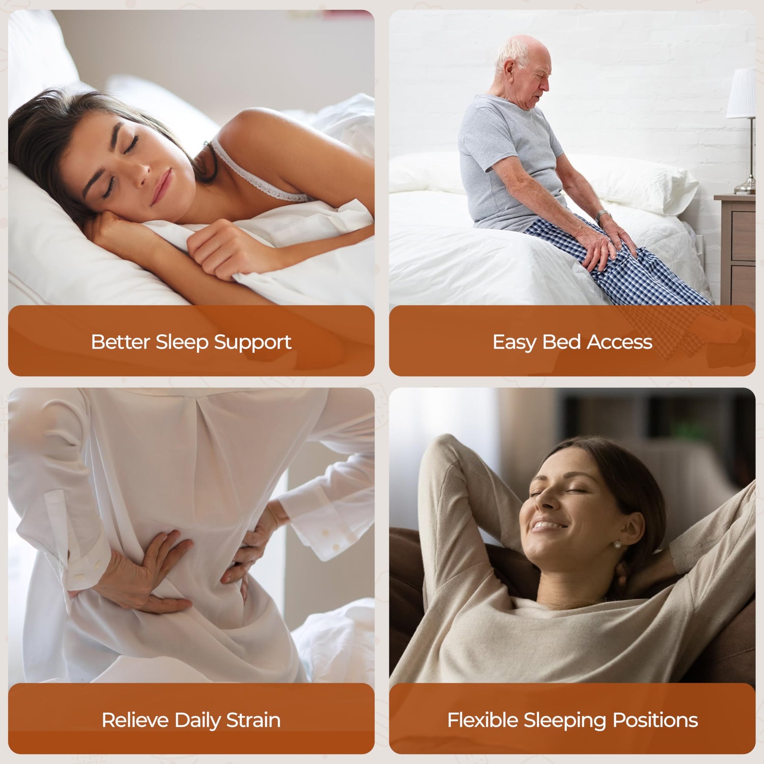 - Quiet Massage Function: Enjoy head and foot massages with independent control of this adjustable bed, four frequency modes, four intensity levels, and three timing options—all enhanced by a noise-reducing motor for a serene experience