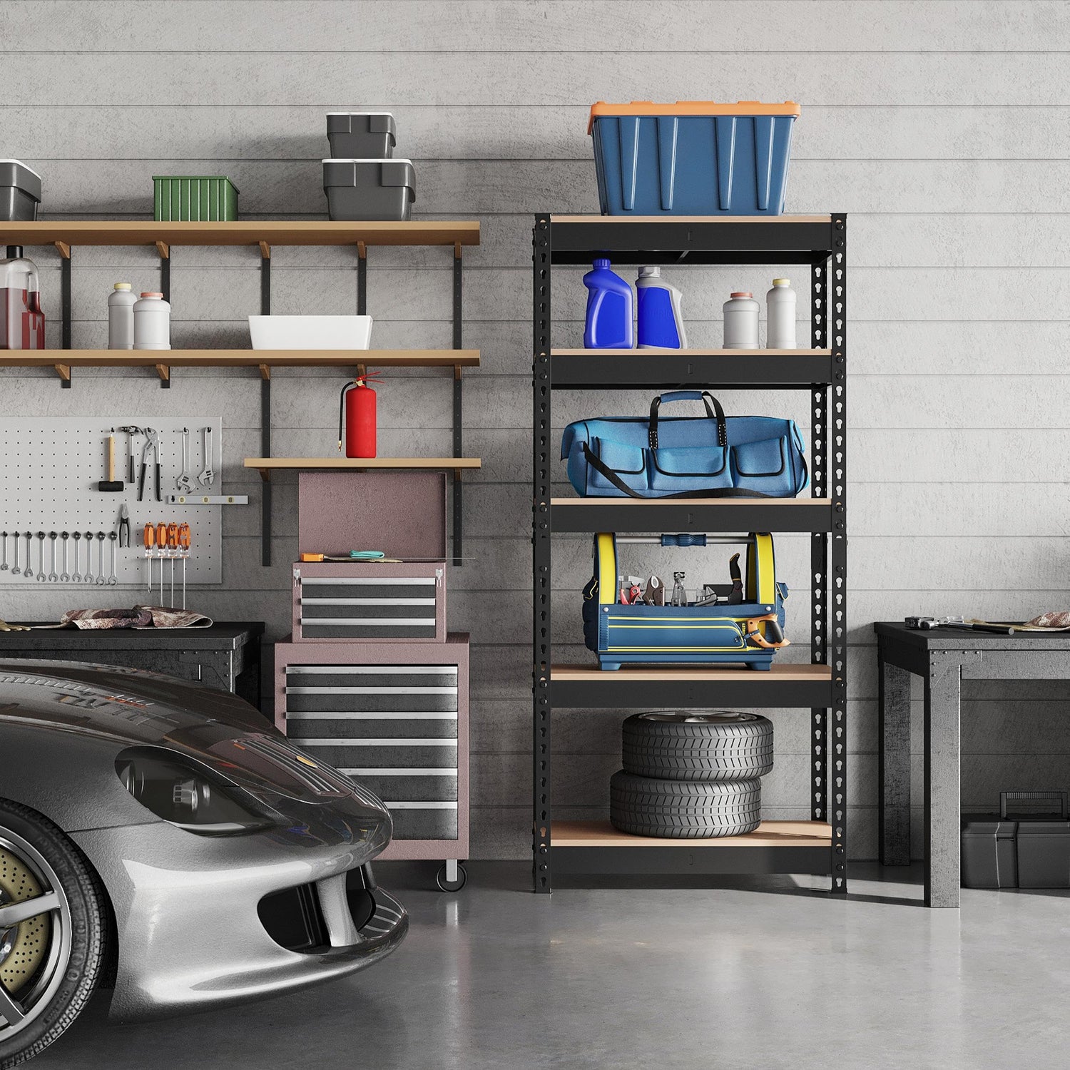 Yaheetech Storage Shelves 5 Tier Garage Shelving Heavy Duty Garage Shelves Adjustable Metal Shelving Unit Utility Rack Industrial Shelving for Warehouse Pantry Closet, 27.5"W x 12"D x 60"H, Black