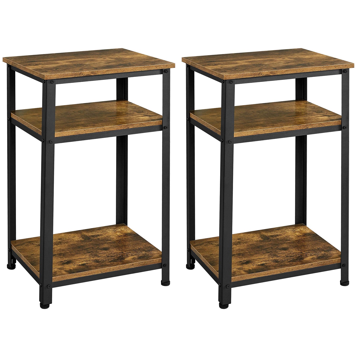 Yaheetech Tall End Table Set of 2, 18x14x29.5 inch Industrial Side Table with Strong Wooden Shelves, 2PCS Slim 3-Tier Telephone Table with Metal Frame for Living Room, Small Places - Rustic Brown