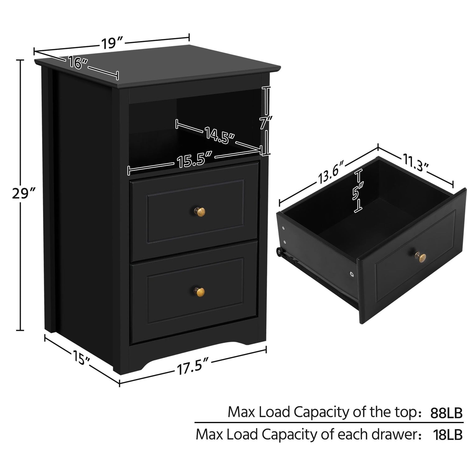 Yaheetech Tall Nightstand with 2 Drawer and 1 Cubby, 29" High Bedside Table Wooden Storage Cabinet Bed Side Table with Drawer for Bedroom Home Office, Black