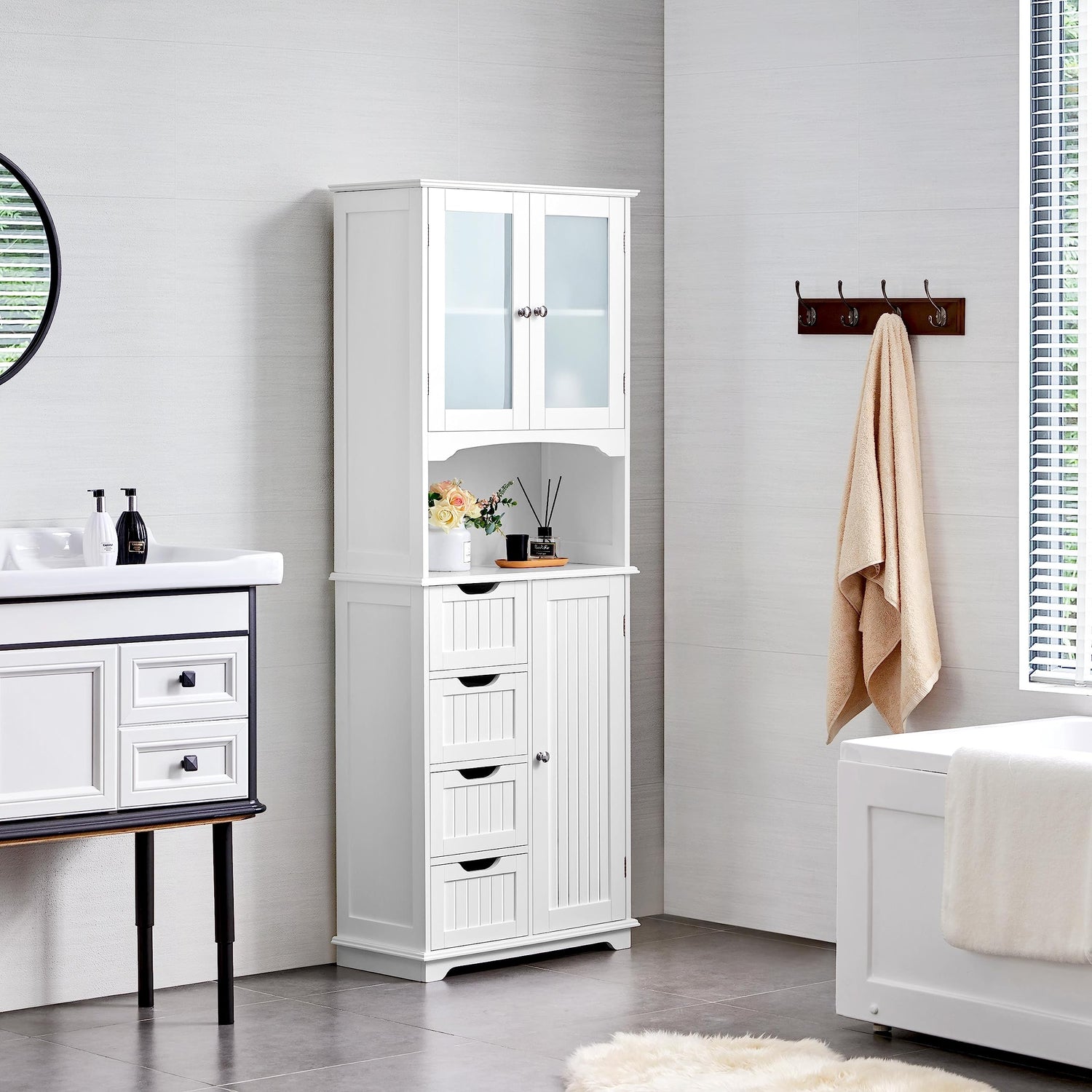 Yaheetech Tall Storage Cabinet with Glass Door, Bathroom Floor Cabinet 65.5″, Kitchen Pantry Storage Cabinet with Open Compartment, 4 Drawer and Adjustable Shelves for Bathroom, Kitchen, Living Room