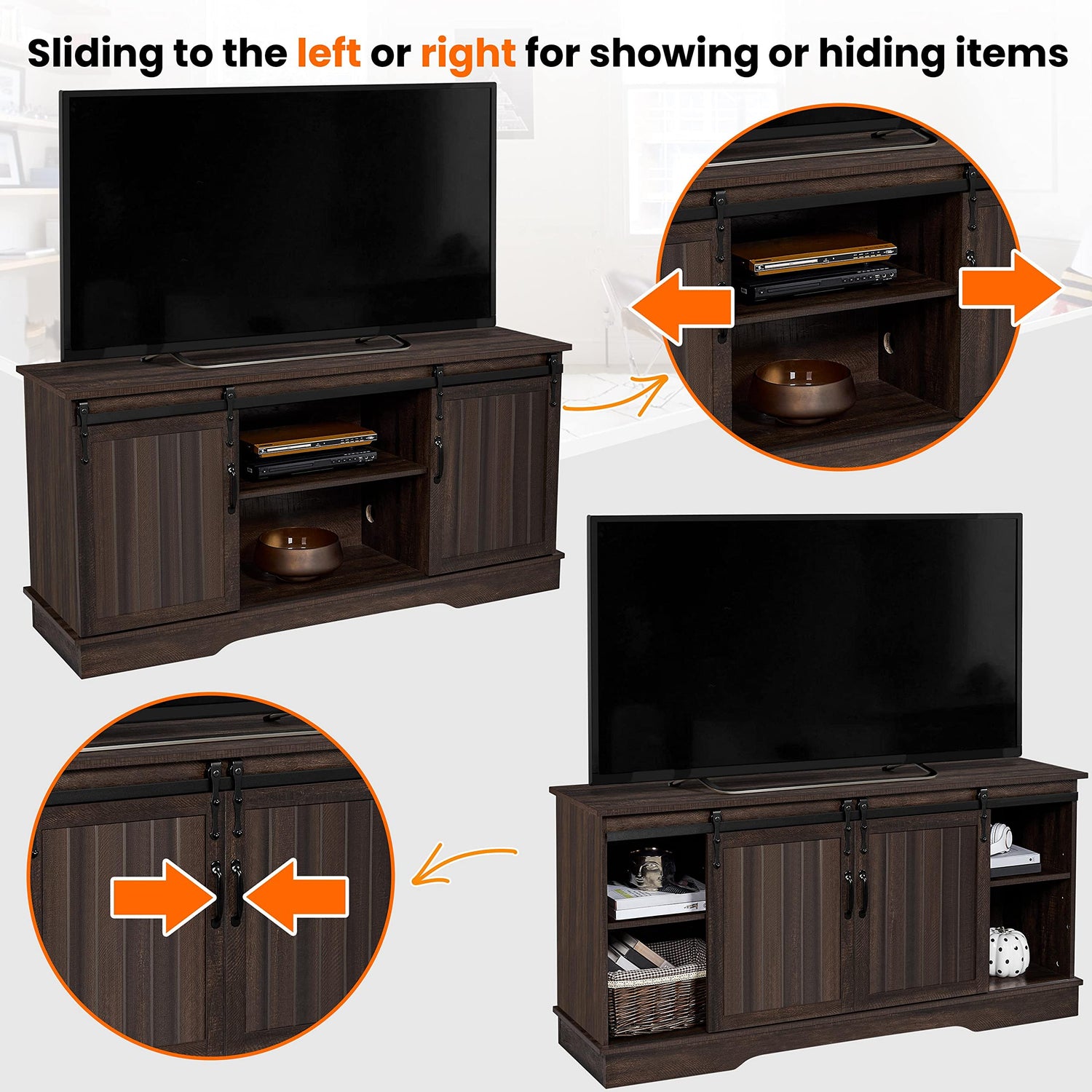 Yaheetech TV Stand for TVs Up to 65 inch, Farmhouse Media Entertainment Center, 58'' TV Console Table with Adjustable Shelves & Sliding Barn Doors for Living Room, Dark Walnut