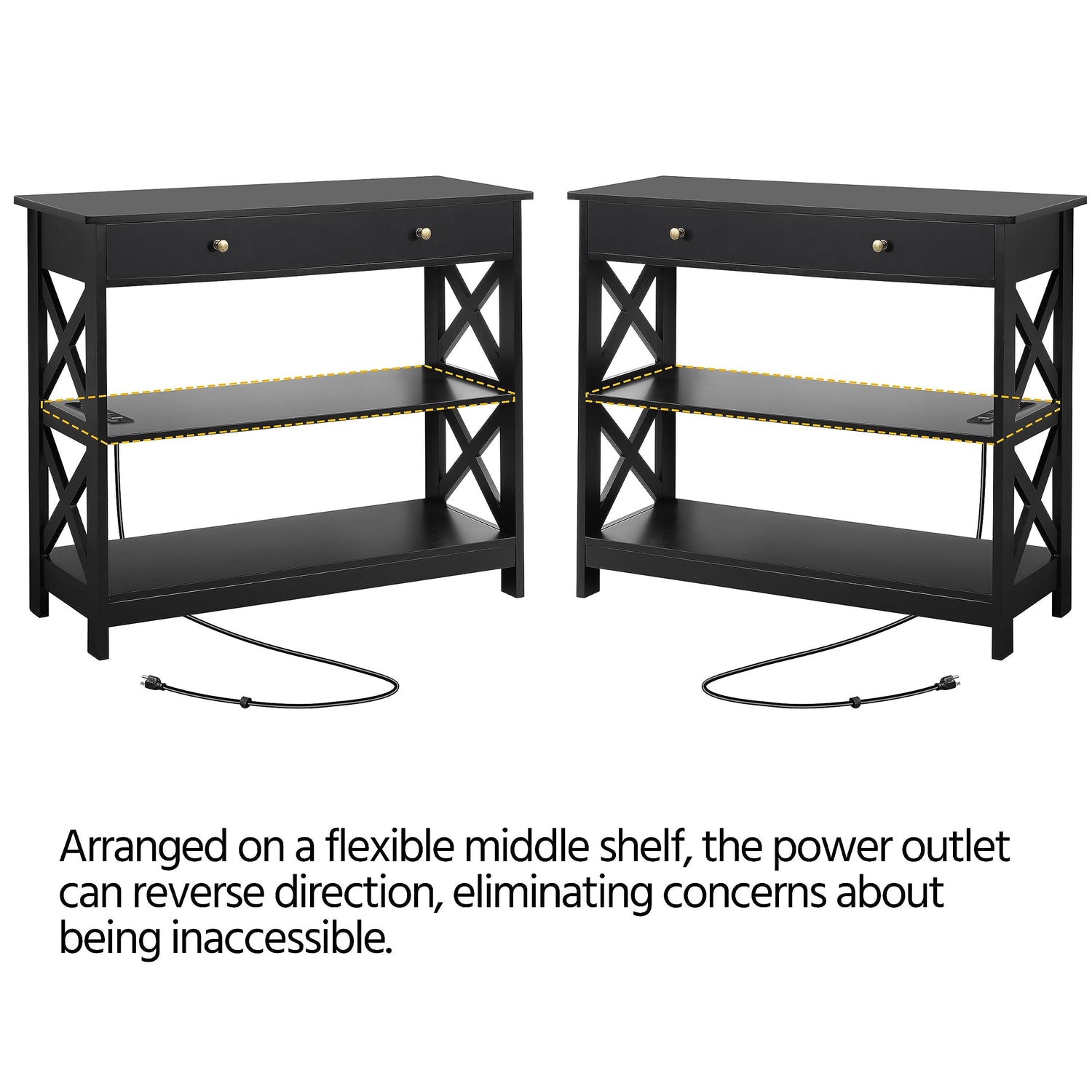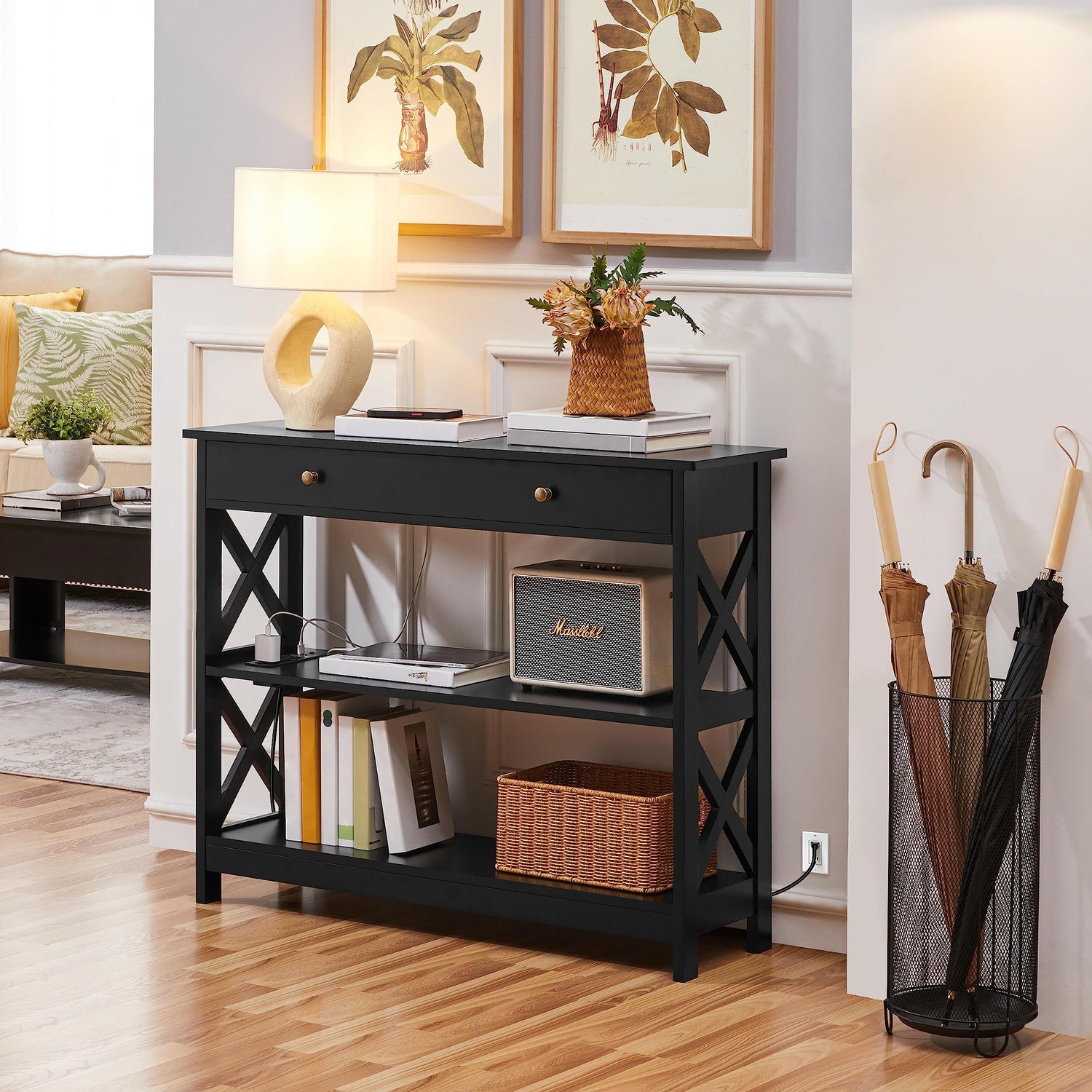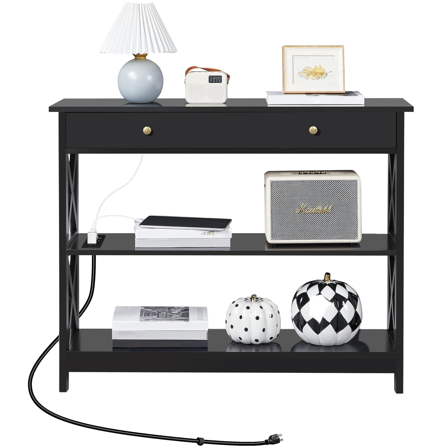 - Sturdy: This wooden entryway table features a robust construction. It is built of CARB P2 MDF panels and solid pine wood to last for years of use. It can bear up to 55 lb on the top, 35.2 lb on each of the two shelves, and 11 lb in the drawer