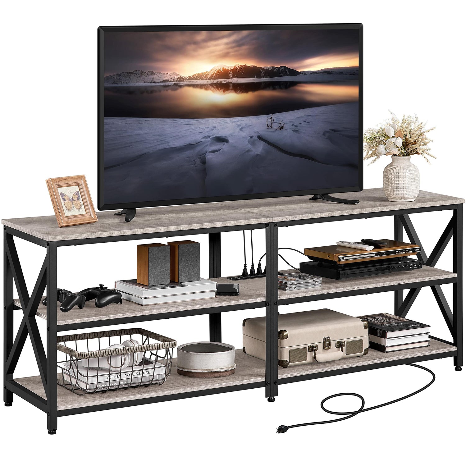Yaheetech TV Stand with Power Outlet for 75 Inch TV, 3 Tiers TV Storage Cabinet Entertainment Center, Retro 63 Inch Long TV Console Table with Charging Station for Living Room, Gray
