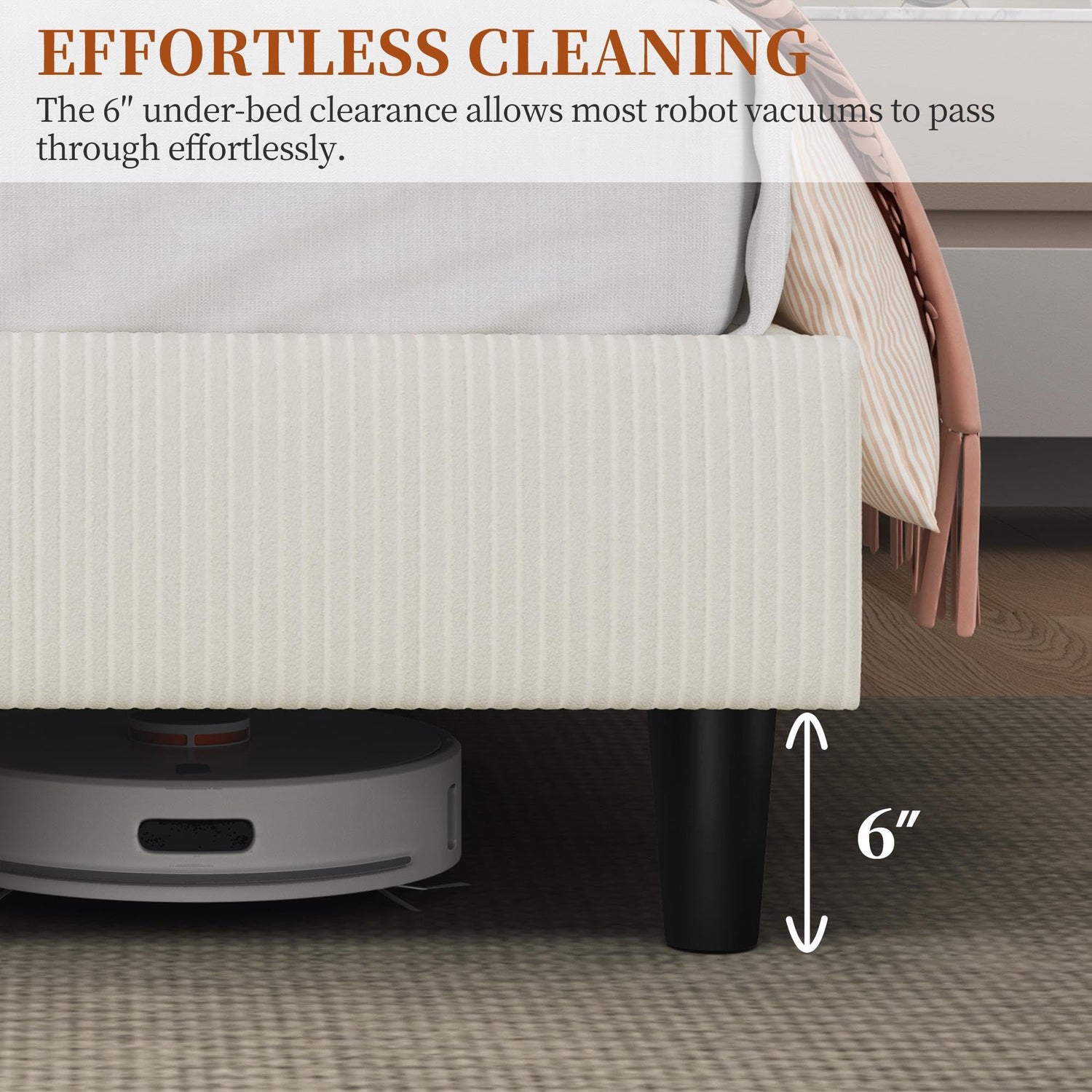 - Sturdy Construction: With an interior wooden framework, 4 solid support legs, 10 durable slats, and a dense foam-padded border, this upholstered bed offers enhanced comfort and long-lasting durability, supporting up to 450 lb for a restful night's sleep