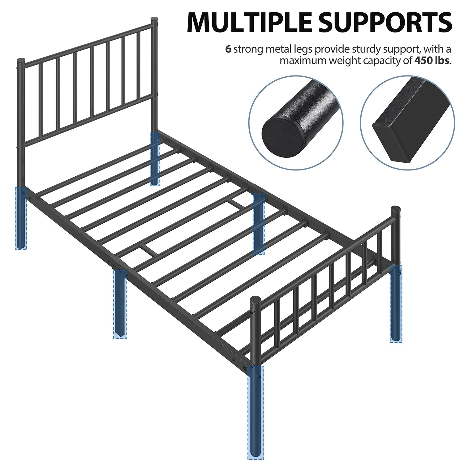 - Painstaking Details: With years of bed manufacturing experience, we pay close attention to every detail to ensure safe and comfortable use. The twin metal bed frame's baked coating resists water and minor scratches, while the bottom rubber caps reduce friction noise and protect your floor