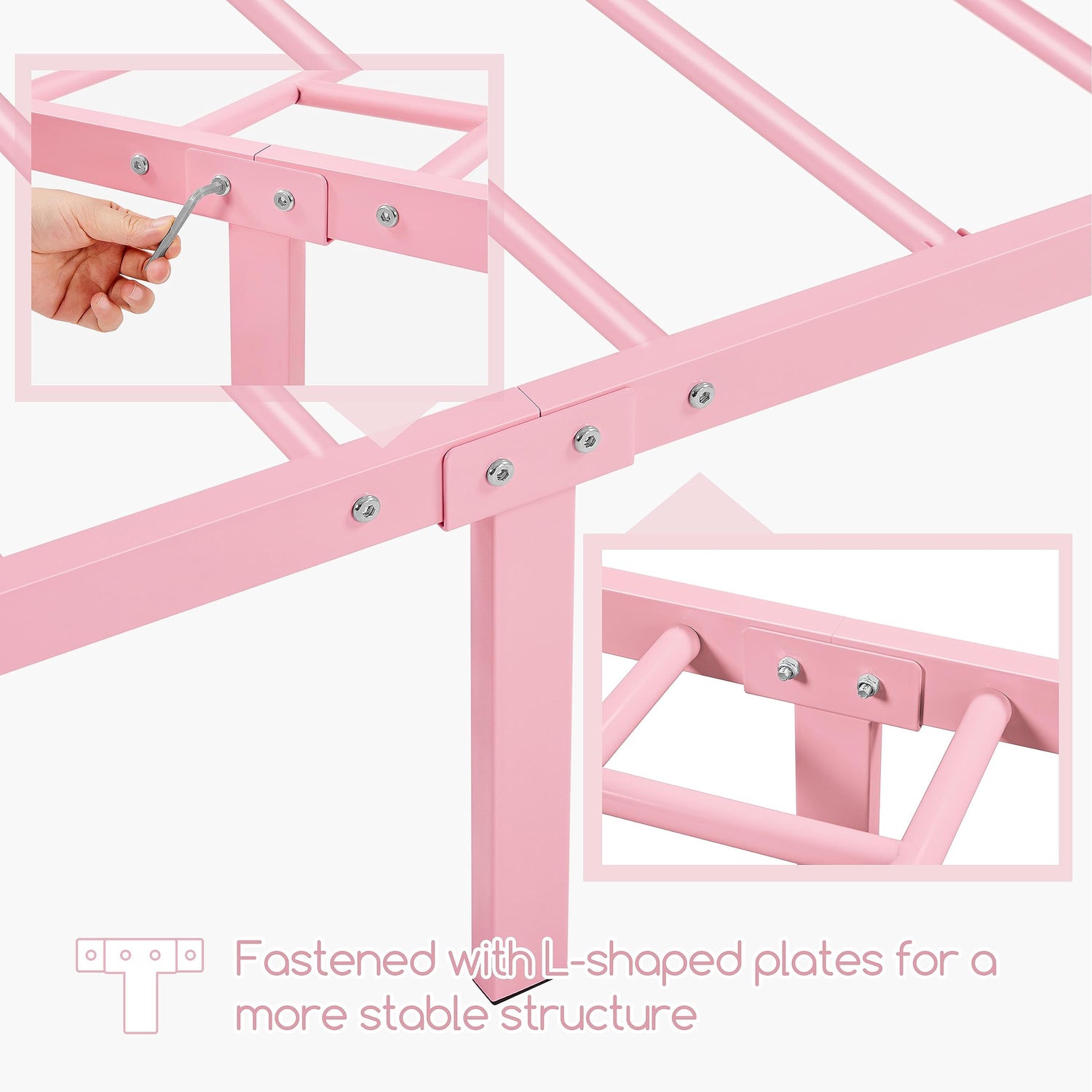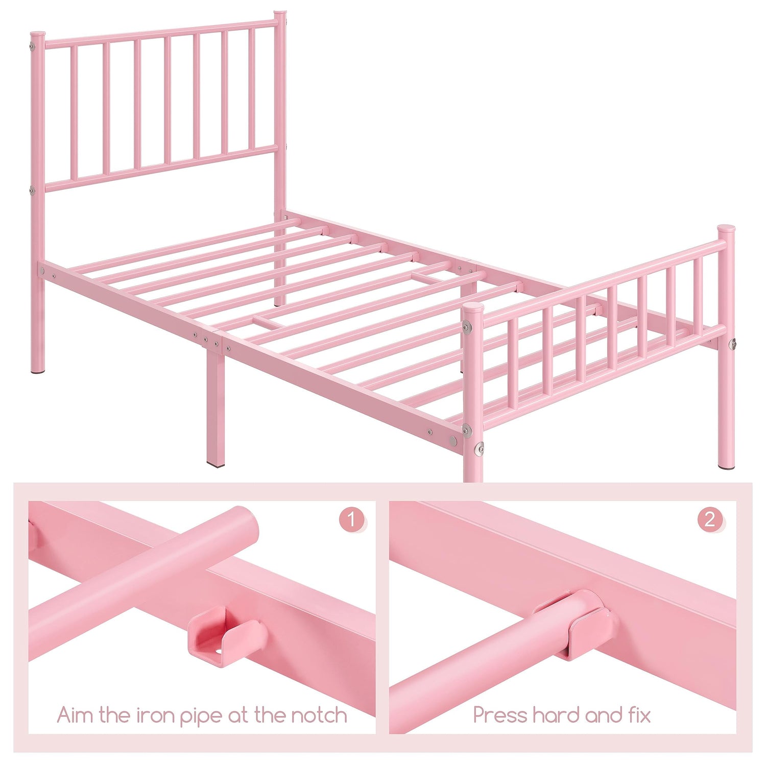 Yaheetech Twin Size Bed Frame Metal Platform Bed Frame Mattress Foundation with Spindle Headboard & Footboard/No Box Spring Needed/14 Inch Underbed Storage/Firm Support & Easy Set up Structure, Pink