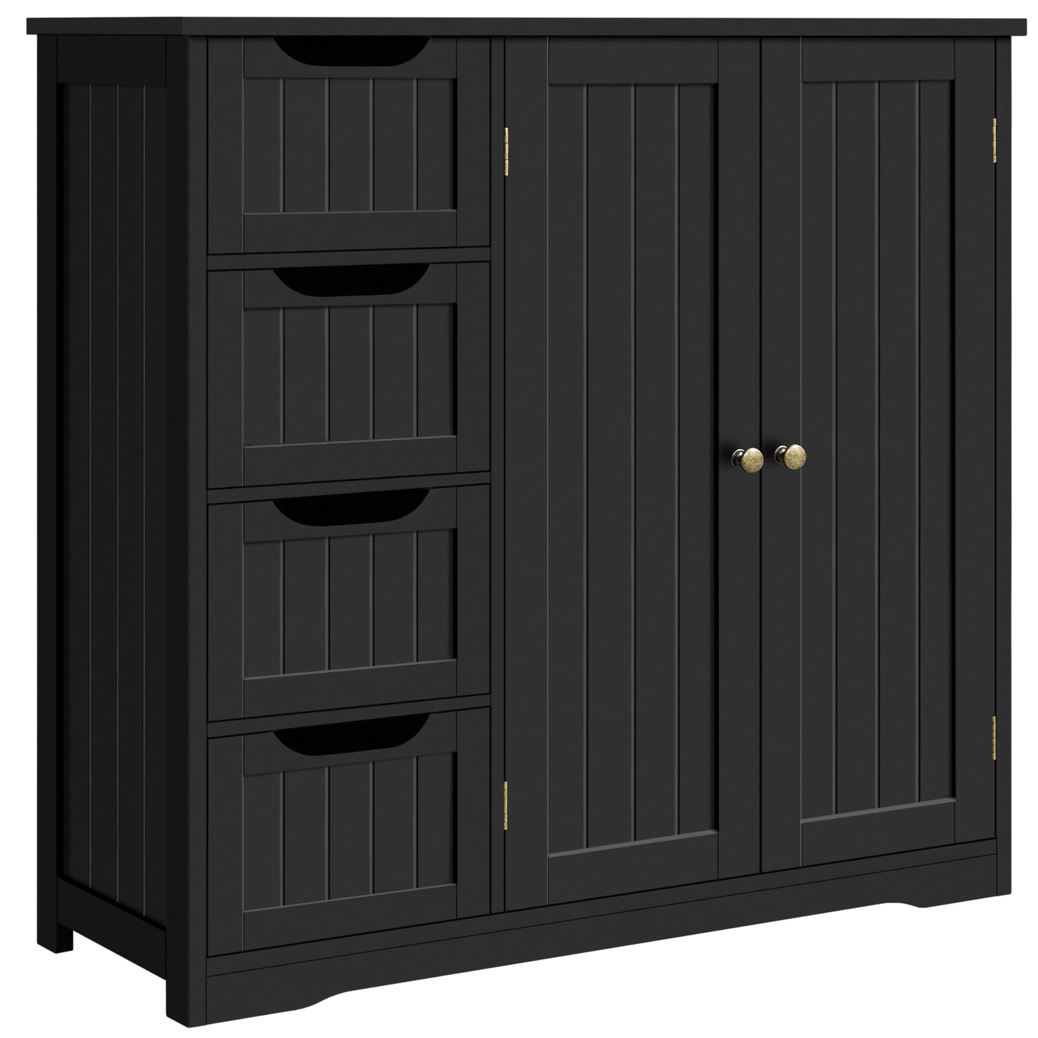 Yaheetech Black Wooden Bathroom Storage Cabinet with 4 Drawers and Double Doors
