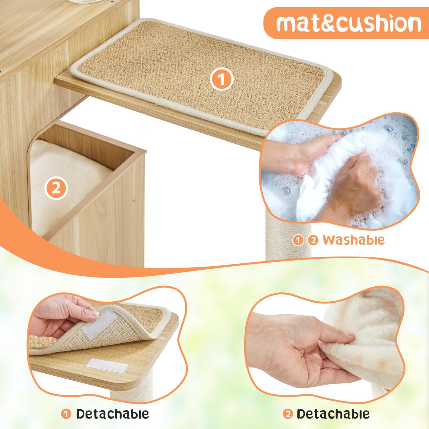 - 【Easy to Clean】The cushion can be removed and washed. The wooden cat furniture can be wiped with a damp cloth to remove pet hair and debris, keeping it clean and well-maintained.
