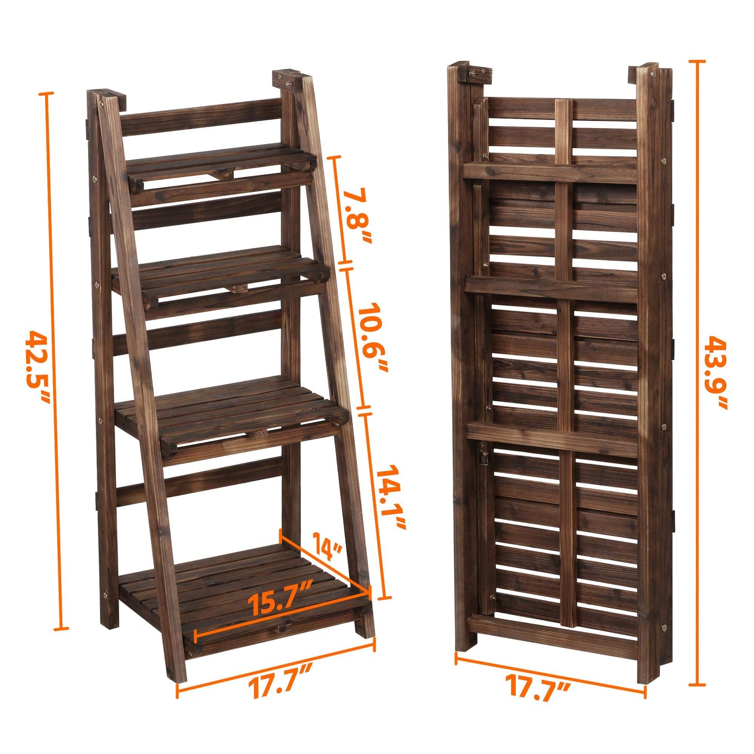 - đˇăExcellent Space SaverăThis flower ladder shelf measures 42.5ââ high, 17.7â long and 14â wide, and features 4 tiers, providing adequate space for more than 8 potted plants and sparing much space in your balcony. Perfectly for your living room, bedroom, balcony, or any other outdoor living space like a patio, garden, backyard, etc.