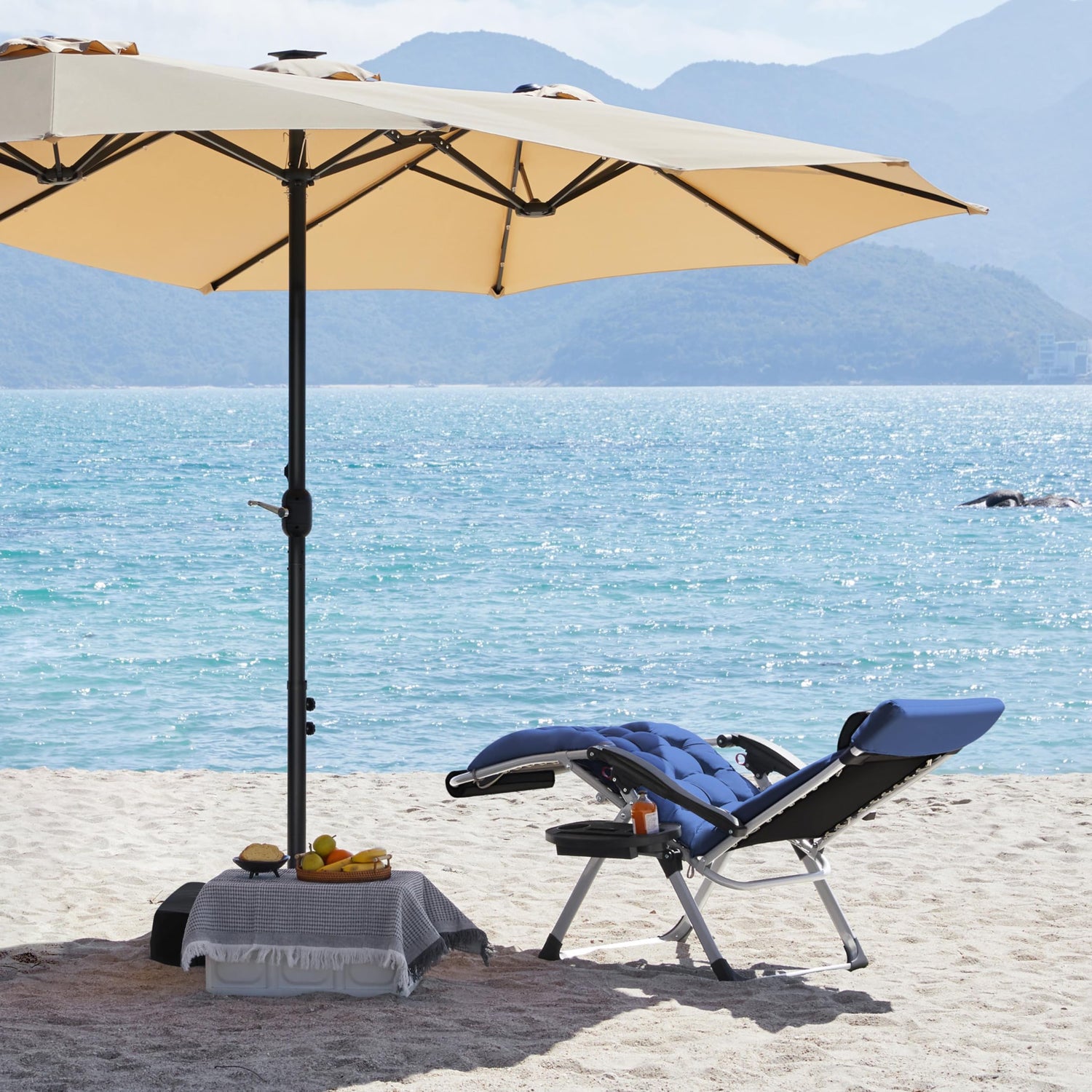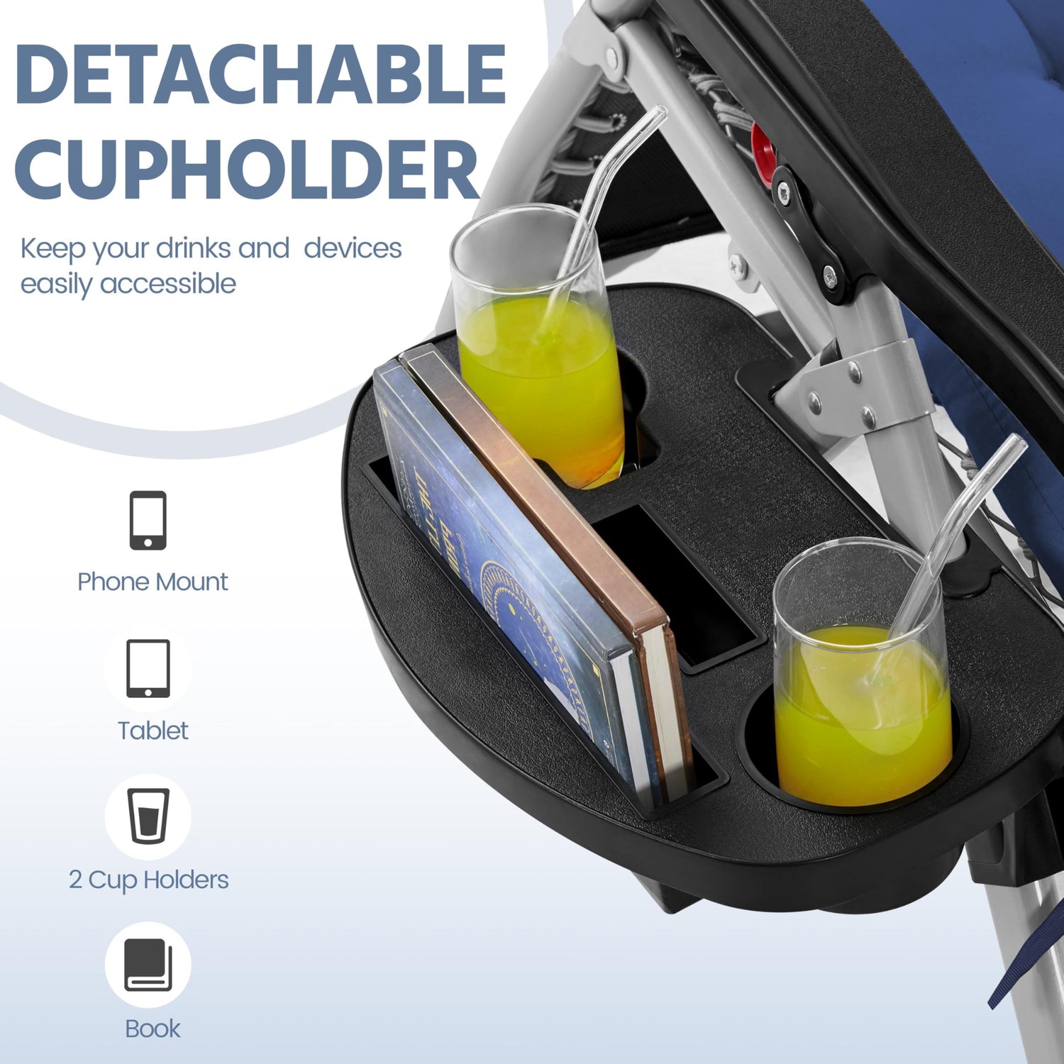 Yaheetech Zero Gravity Chair, Folding Reclining Lounge Recliner with Removable Pad & Headrest & Side Cup Holder Tray for Indoor and Outdoor Navy Blue/2