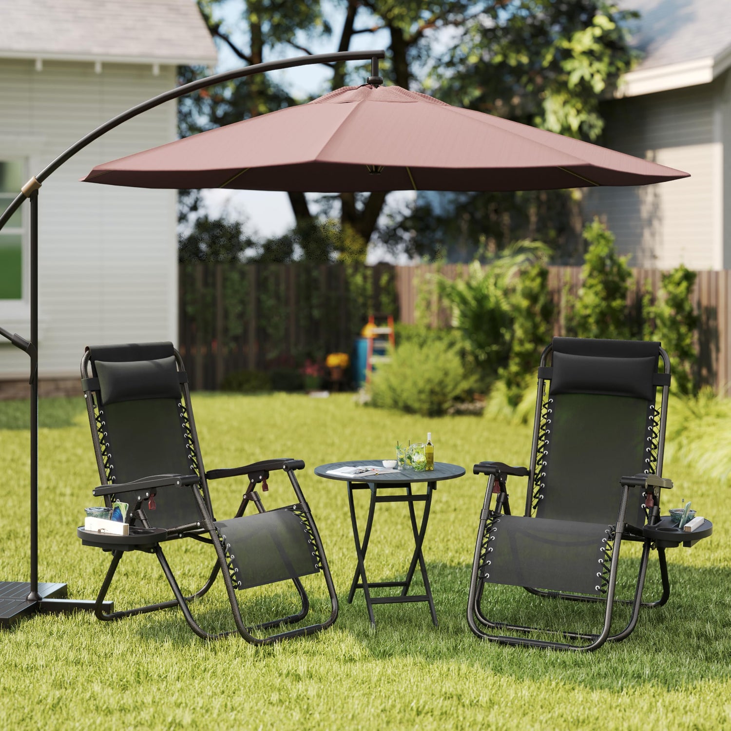 Yaheetech Zero Gravity Recliners Outdoor Adjustable Folding Reclining Lounge Chairs w/Pillows, Cup Holder Trays and Carry Strap for Patio Backyard Beach Black Set of 2