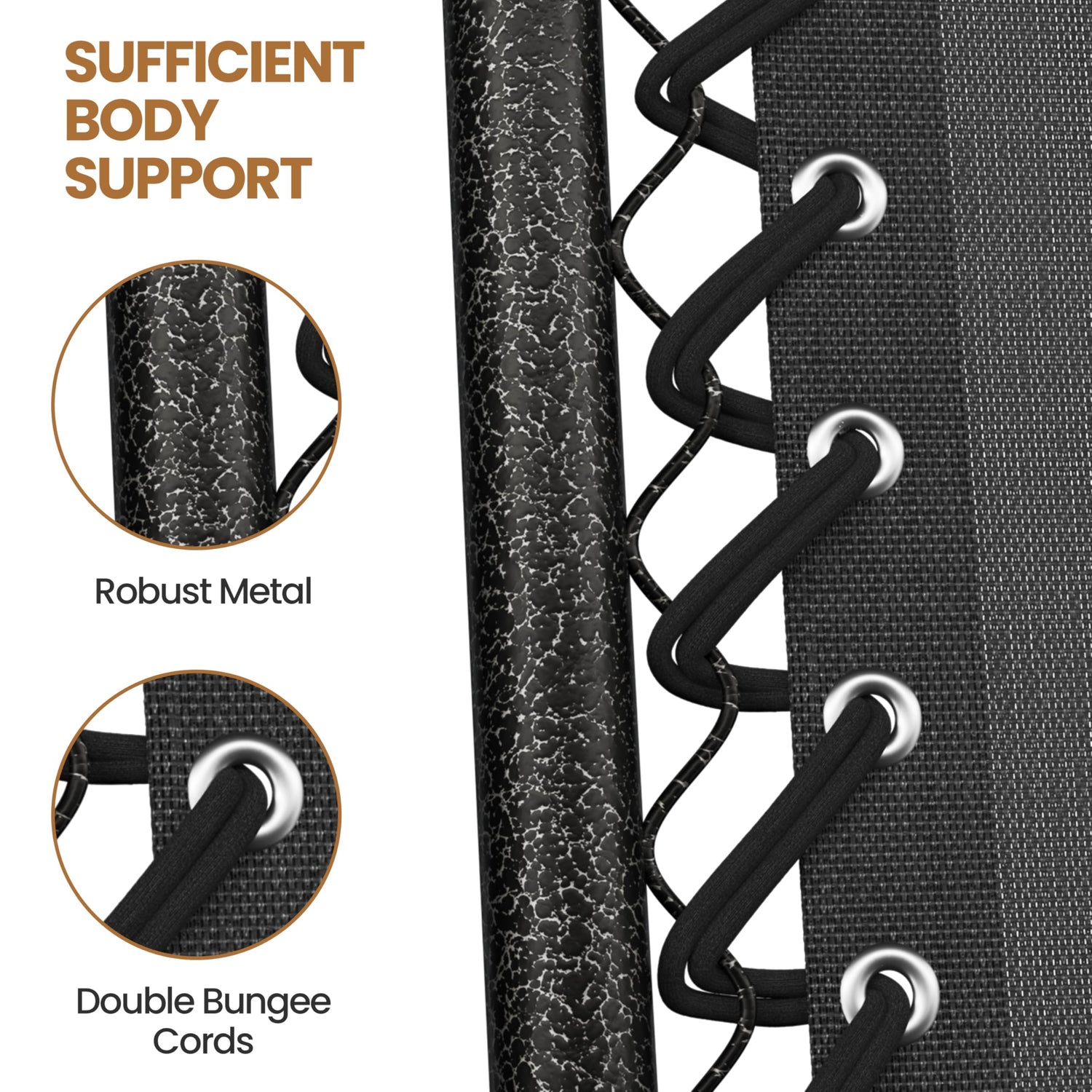 - Adaptive Reclining System: This zero-gravity outdoor recliner aims to offer you an ultimate relaxation. The premium recliner system allows the backrest and footrest to be easily adjusted and firmly fixed at your comfortable angle. The Texteline surface, fixed on the metal frame with elastic straps, adapts to your figure and provides each part of your body with sufficient support