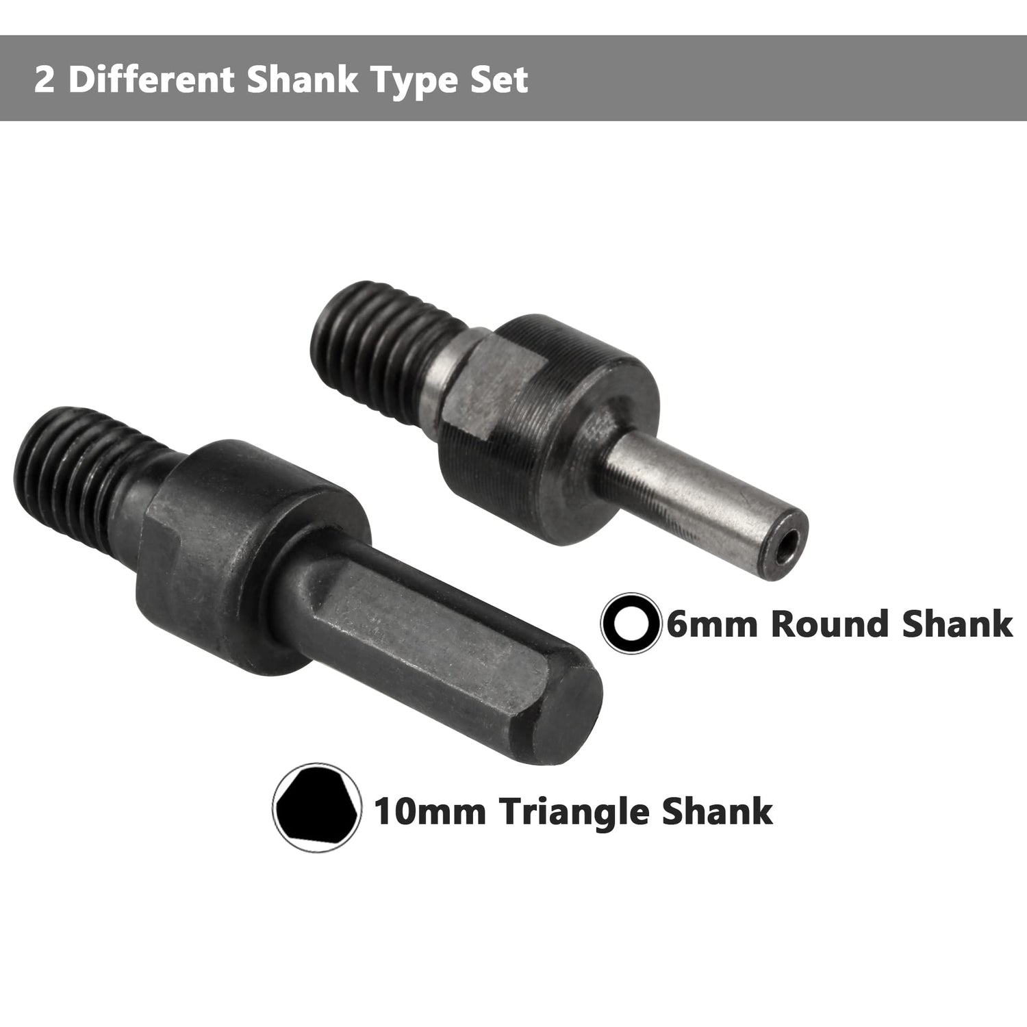 - 10mm triangular shaft and 6mm round shaft which can applied to most electric drills for your different work requirements.