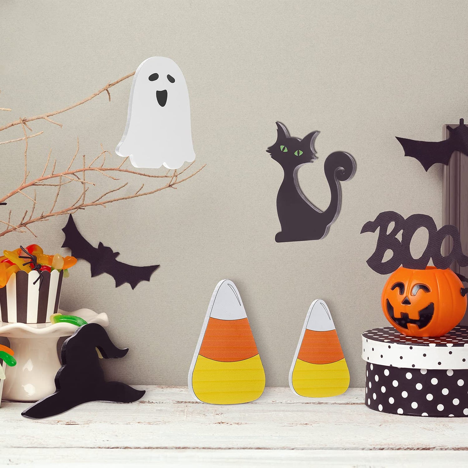 - Dimension information: the ghost and black cat shelf sitter is approx. 12 x 9 cm/ 4.7 x 3.5 inches, the witch's hat and small candy corn measures approx. 12 x 8 cm/ 4.7 x 3.1 inches, and the big candy corn is about 15 x 10 cm/ 5.9 x 3.9 inches, various sizes to meet your decor needs