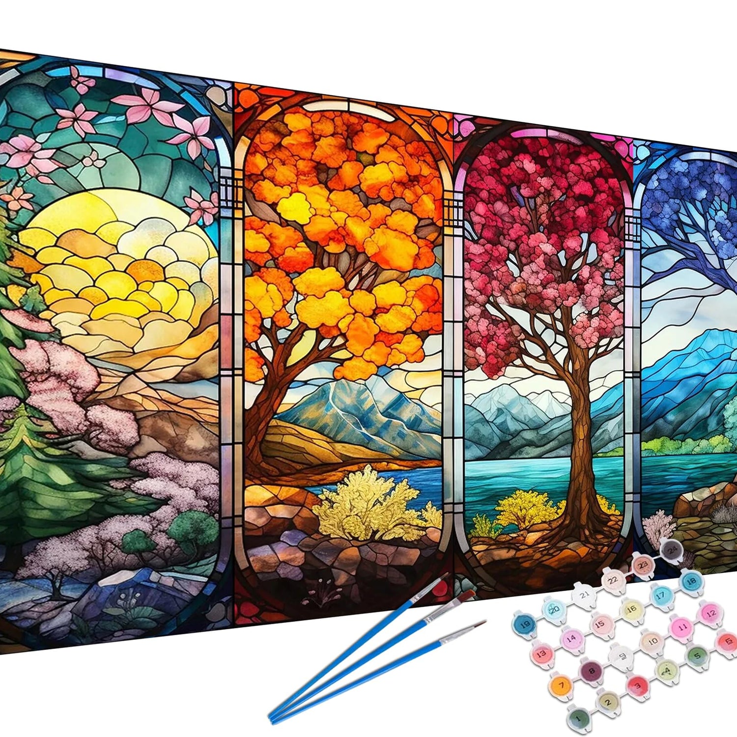 YALKIN Paint by Number for Adult Kits, DIY Four Season Trees Oil Acrylic Painting Kits for Adults Beginners on Canvas for Home Wall Decor Gifts 40x80CM/15.8x31.5in (No Frame)