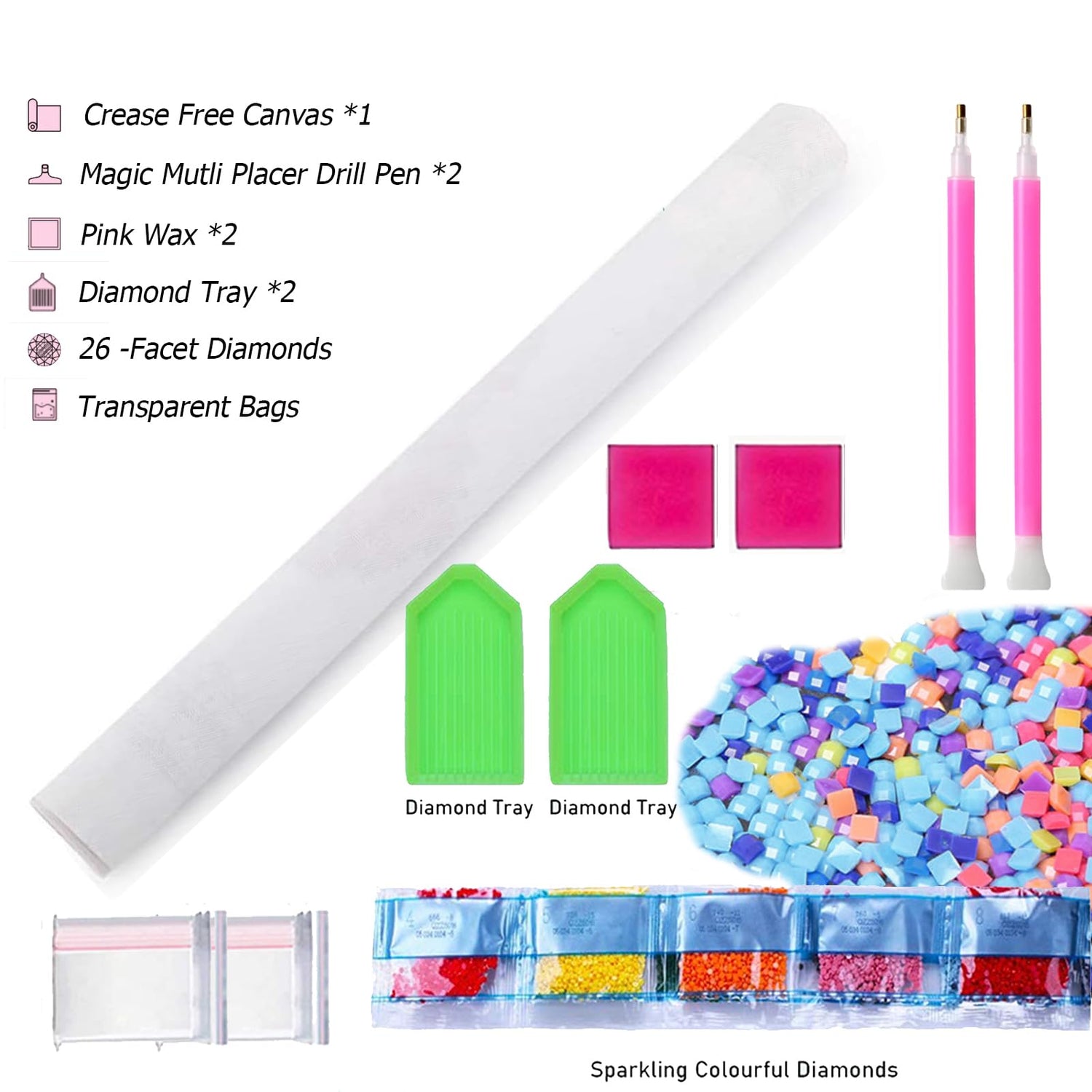 Our kits include ALL items needed for your diamond art kits for adults. Step-by-step instructions that are clear and easy to read, even for beginners. WAX, CRAFT TRAY and Diamond Painting Pen!