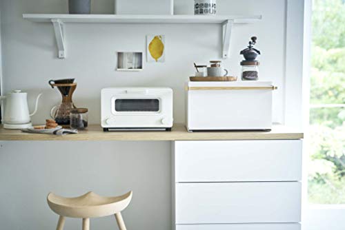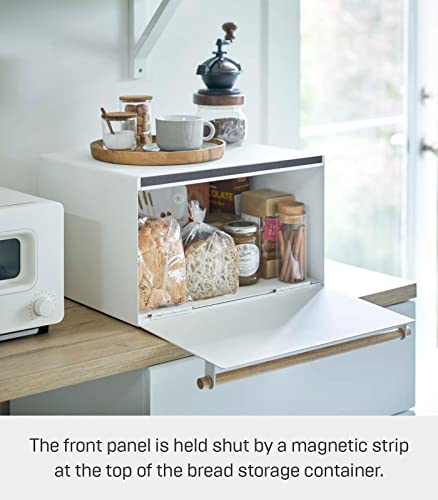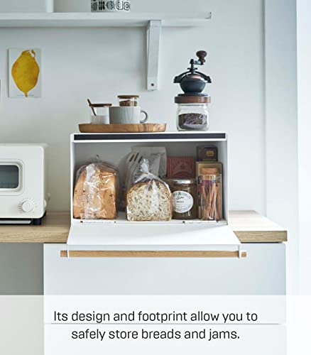 Yamazaki Home Bread Box Keeper Holder Container, Metal Bread Holder Saver, Slim Space Saving Counter Storage Steel + WoodWhite