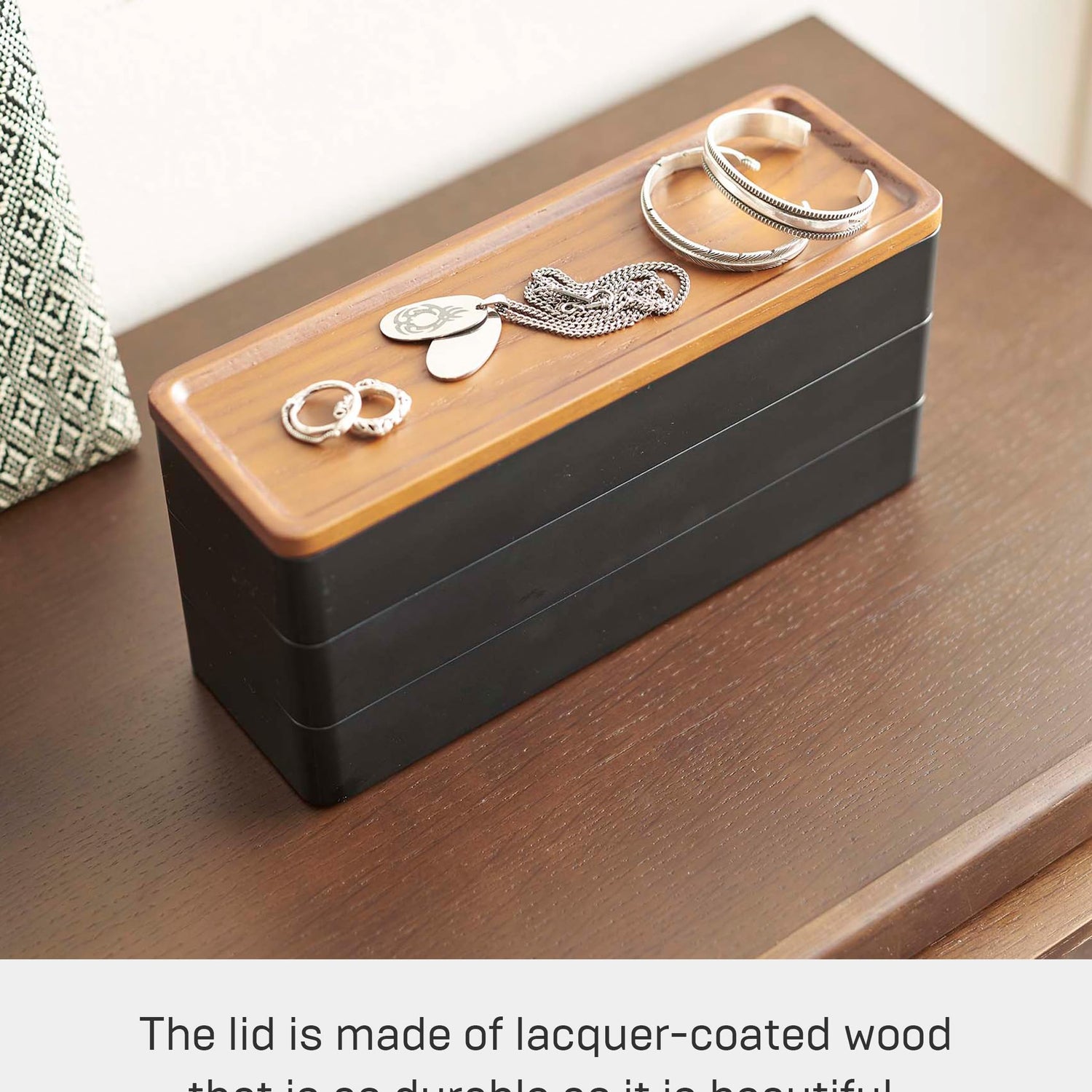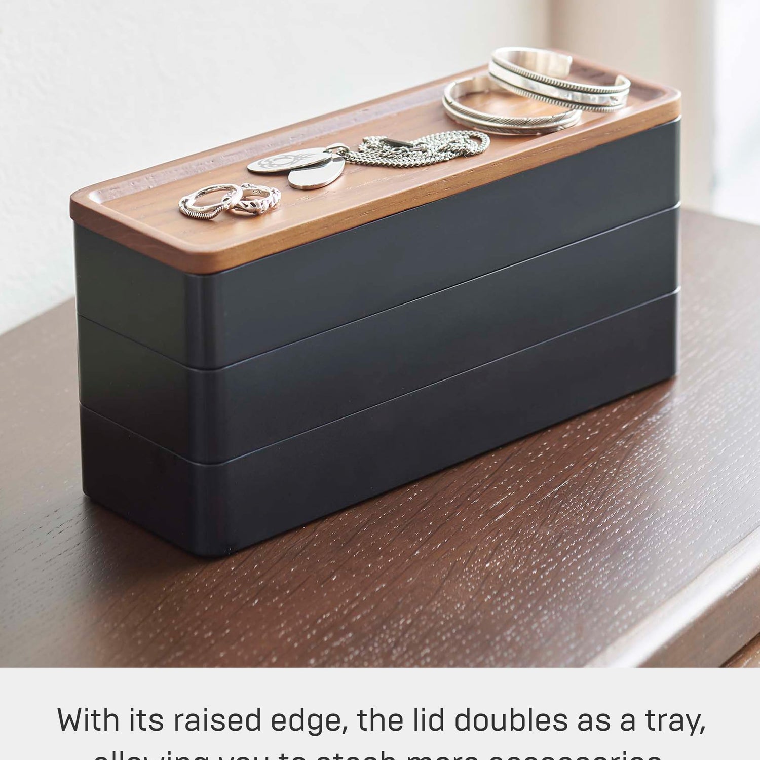 Yamazaki Home Rin Stacking Watch And Accessory Case, Jewelry Box Organizer For Glasses, 3-Tier - Accessories - Plastic + Wood, Black