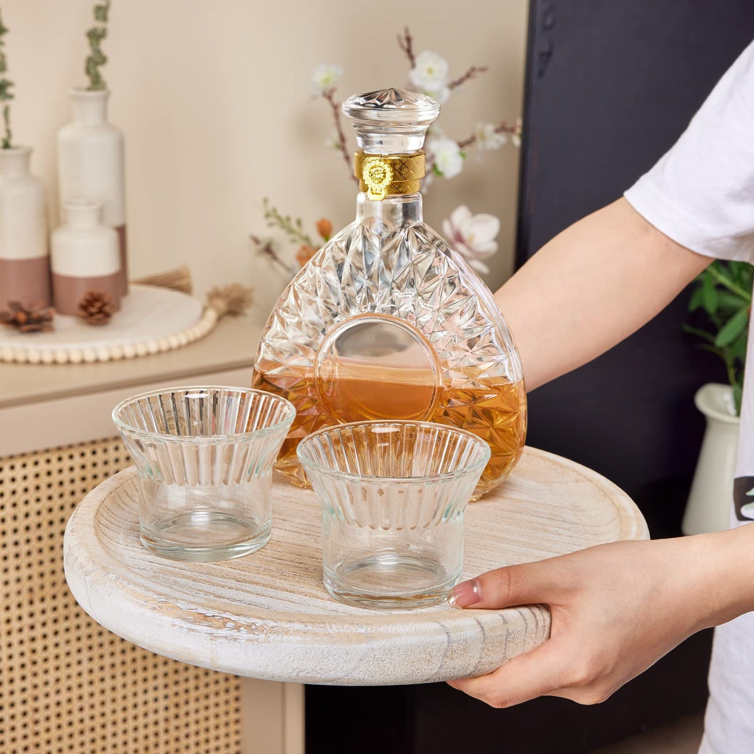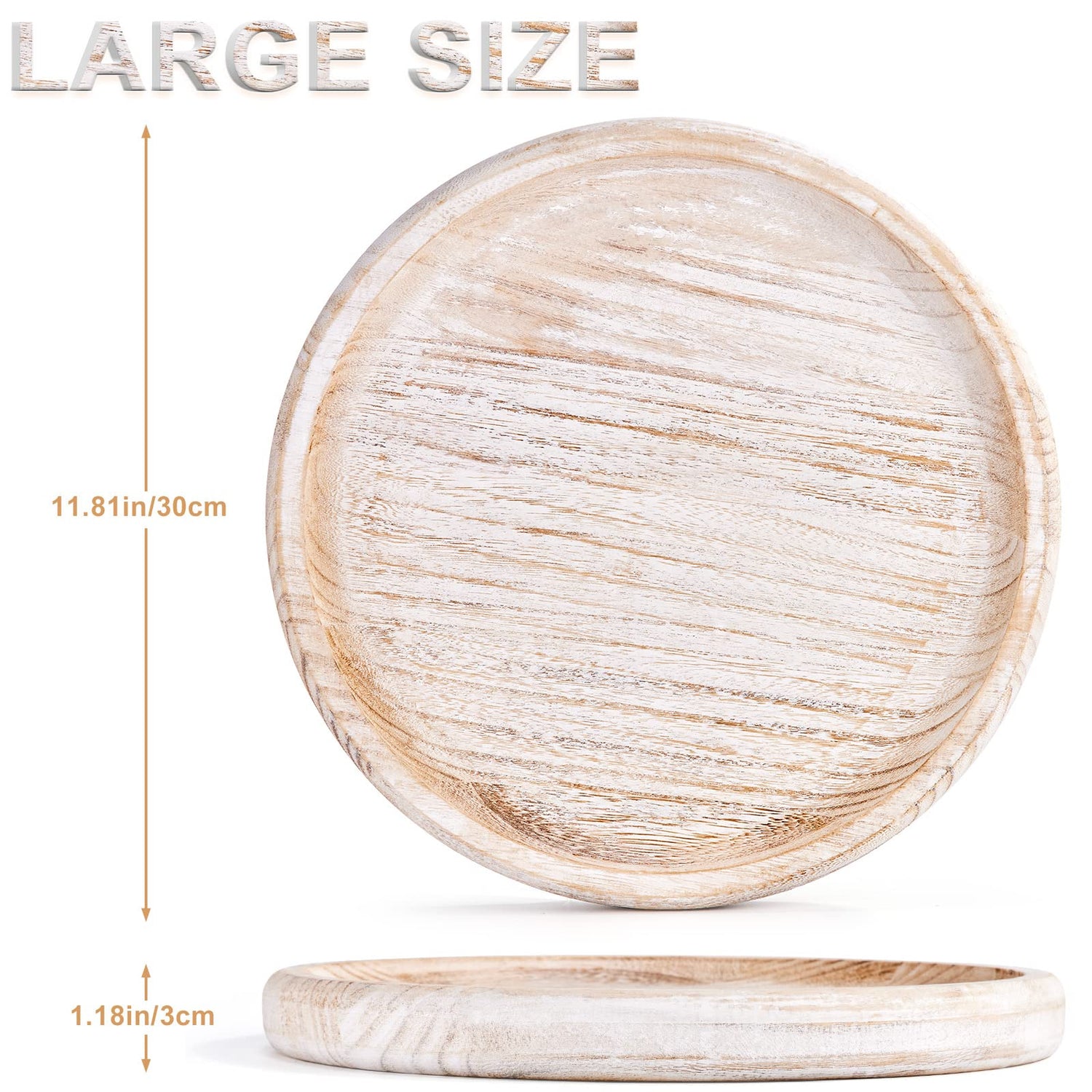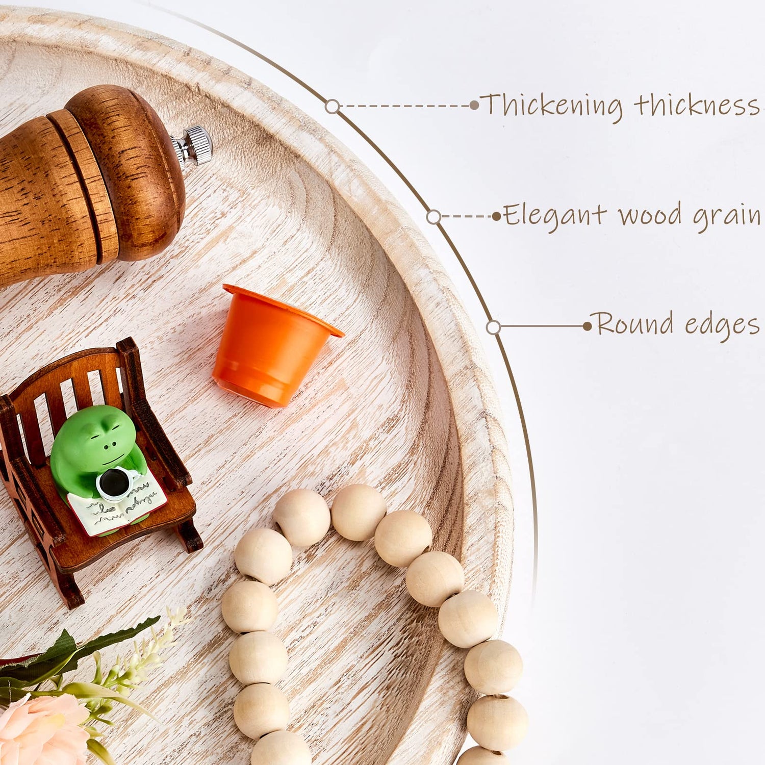 Yangbaga 11.8In Wooden Decorative Serving Tray Coffee Table Tray, Rustic Round-Ottoman Centerpiece Candle Holder Trays,Whitewashed Tray Decor for Farmhouse Kitchen Decor&Table Decor&Dining Room Table
