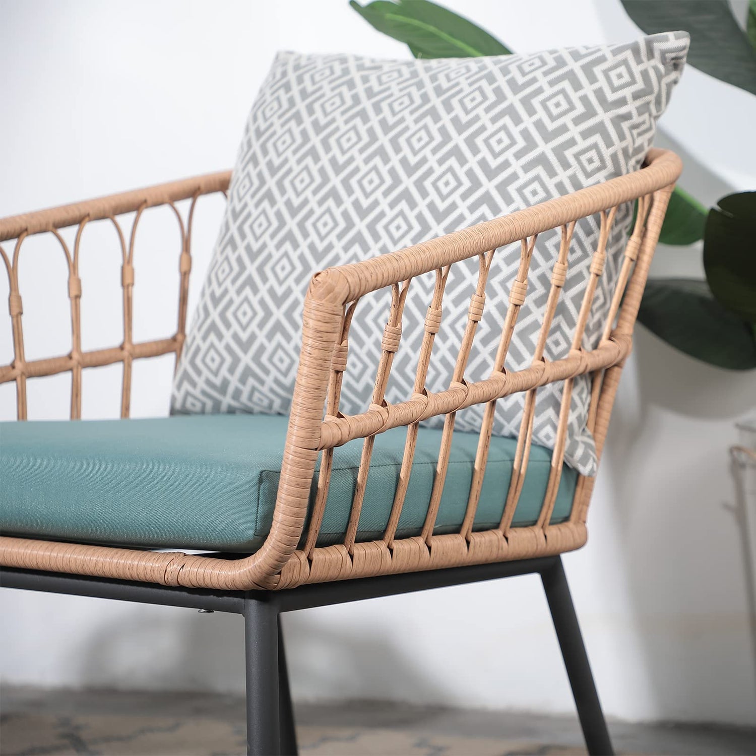 - 【MODERN & COMFORTABLE FURNITURE SET】A sturdy patio set with 2 extra wide seats, soft cushion and comfortable backrest that fits your body perfectly to provide you with hours of cozy time. The fashionable rattan and modern design complements any space, creating a beautiful and luxurious outdoor living space for you and your guests.