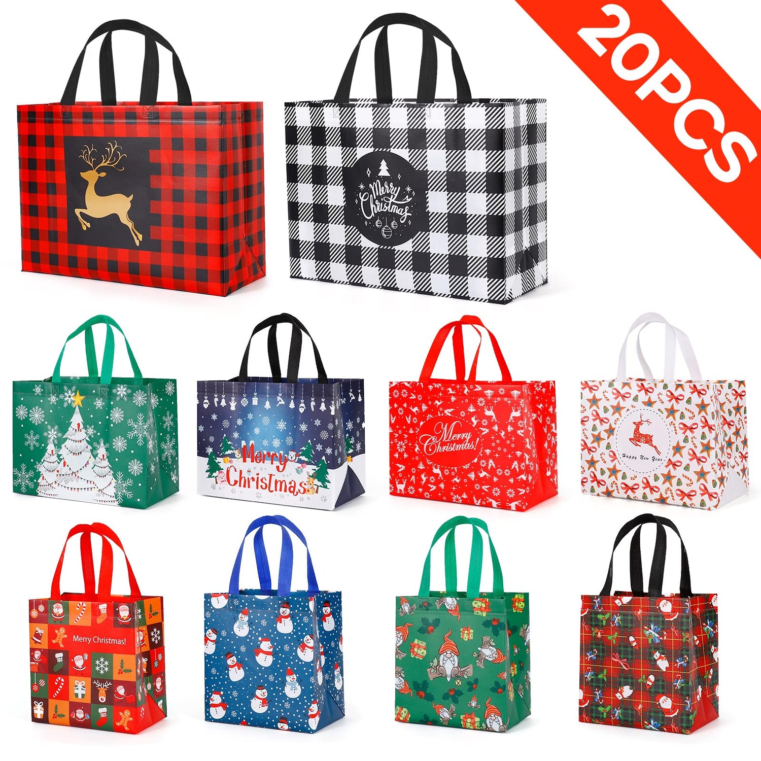 - PACKAGE INCLUDES - 20 pack assorted sizes christmas gift bags 3 sizes: 4 Large (16.9*12.6*6.8 inches), 8 Medium (12.2" x 9.8" x 6.7"inches), 8 Small (9"x 8.5"x5.6" inches).. sufficient to meet your holiday packing needs.