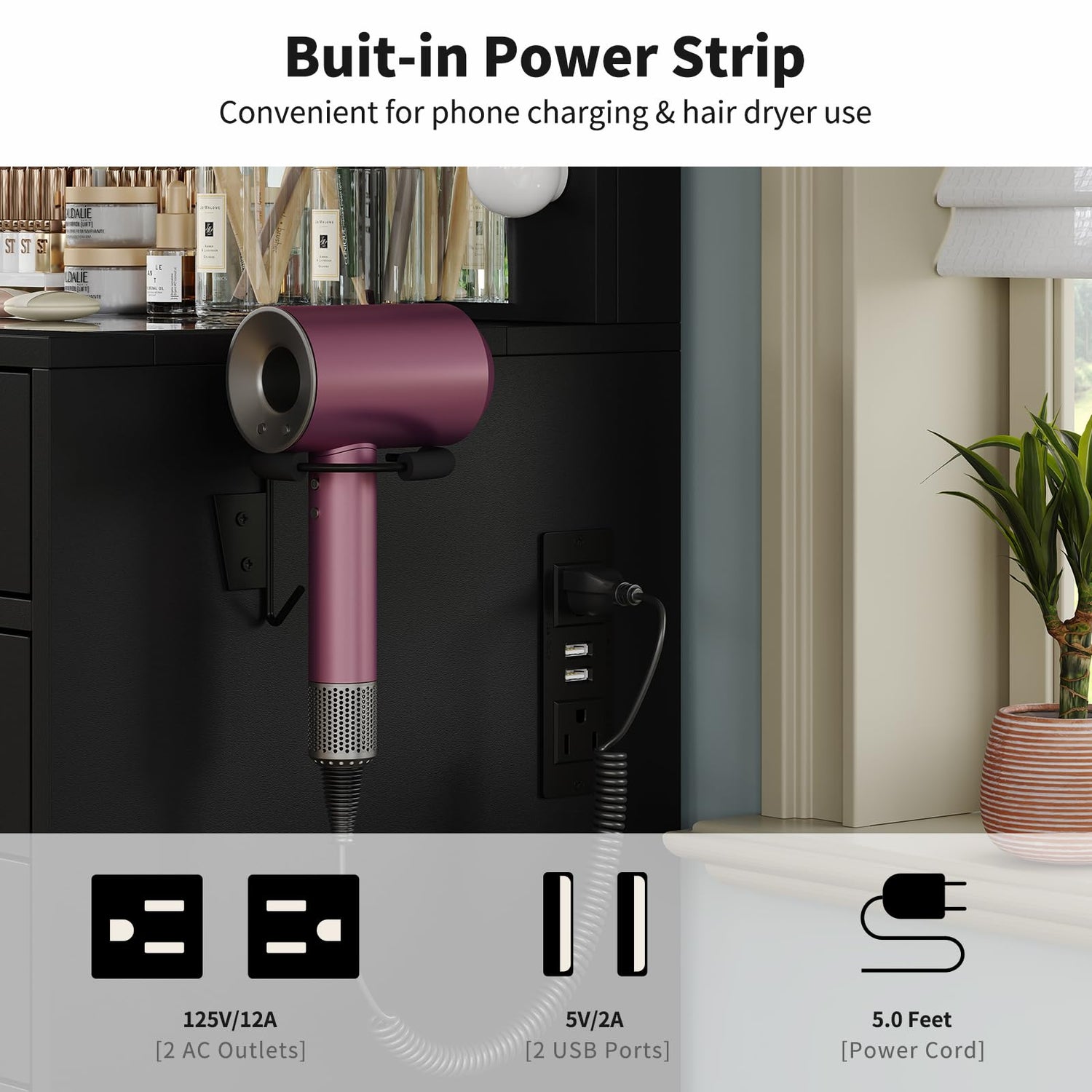 - Vanity Table with Charging Station: This Vanity comes with a hair dryer stand and charging station, including 2 standard plug sockets and 2 USB ports to connect your hair dryer, curling iron, computer, Ipad, mobile phone, allowing you to take beautiful selfies after applying makeup