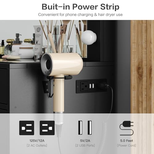 - Vanity Table with charging station: This vanity table comes with a charging station and hair dryer holder, including 2 standard plug sockets and 2 USB ports, which can more conveniently connect hair dryers and curling irons, and can also provide power for your mobile phone, tablet or other devices to charge your mobile device, allowing you to take beautiful selfies after applying makeup