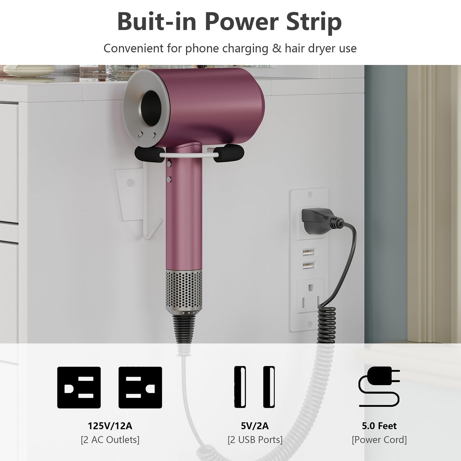 - Come with Charging Station: This vanity comes with a hair dryer stand and charging station, including 2 standard plug sockets and 2 USB ports to connect your hair dryer, curling iron, computer, Ipad, mobile phone, allowing you to take beautiful selfies after applying makeup