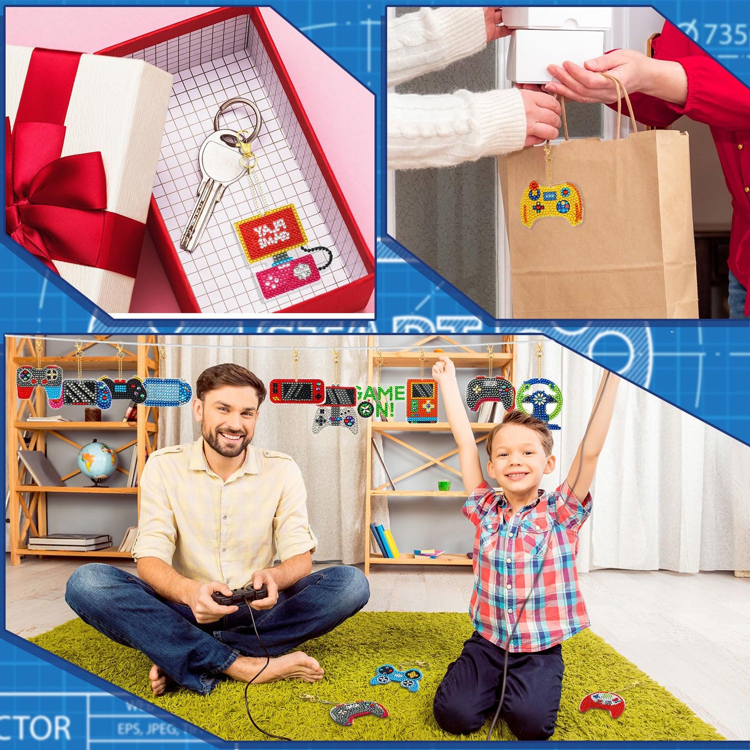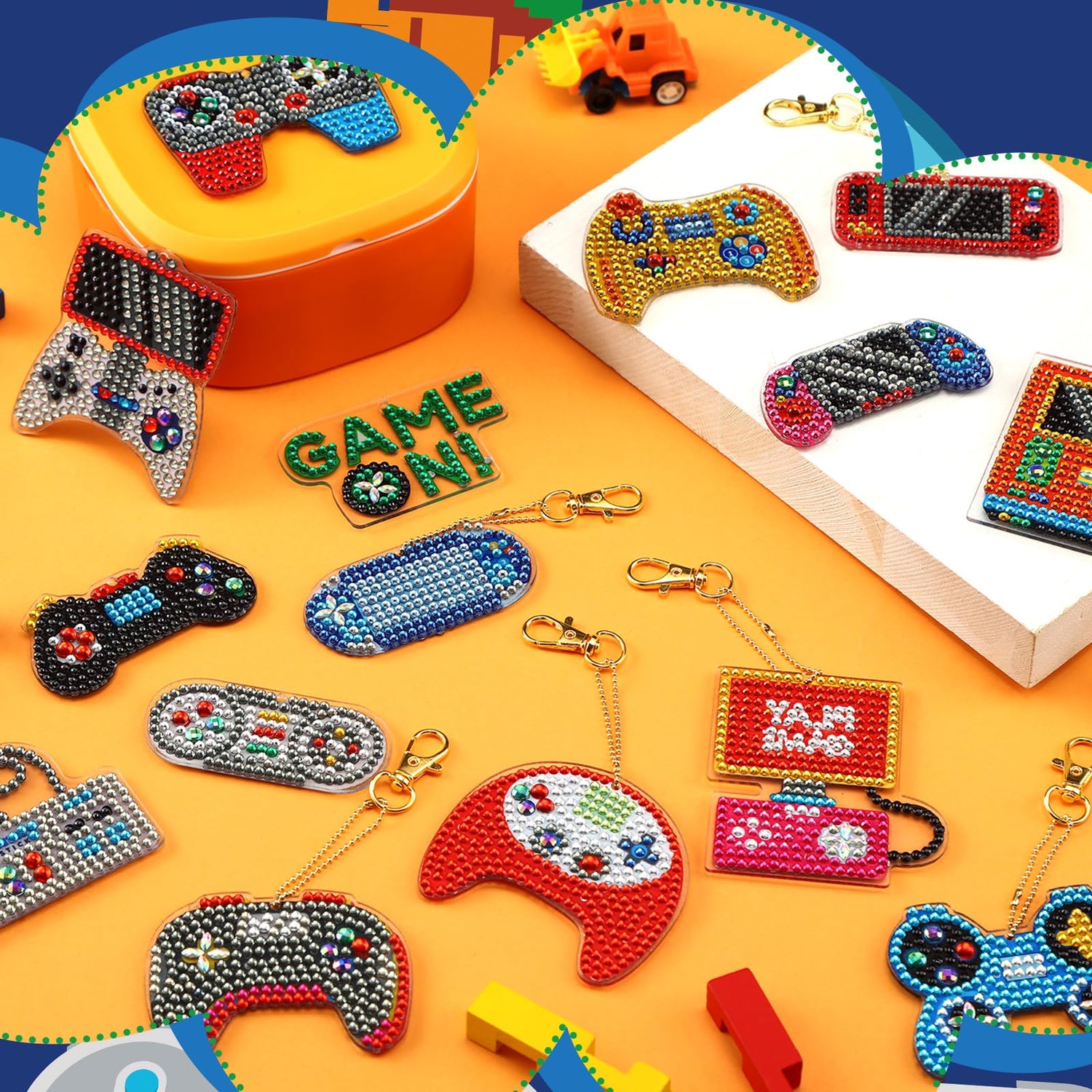 Yaomiao 17 Pcs Video Game Double Side Diamond Art Keychains Diamond Painting Keychains DIY Gem 5d Painting Arts and Crafts for Birthday Beginners Crafting Home Party Decor