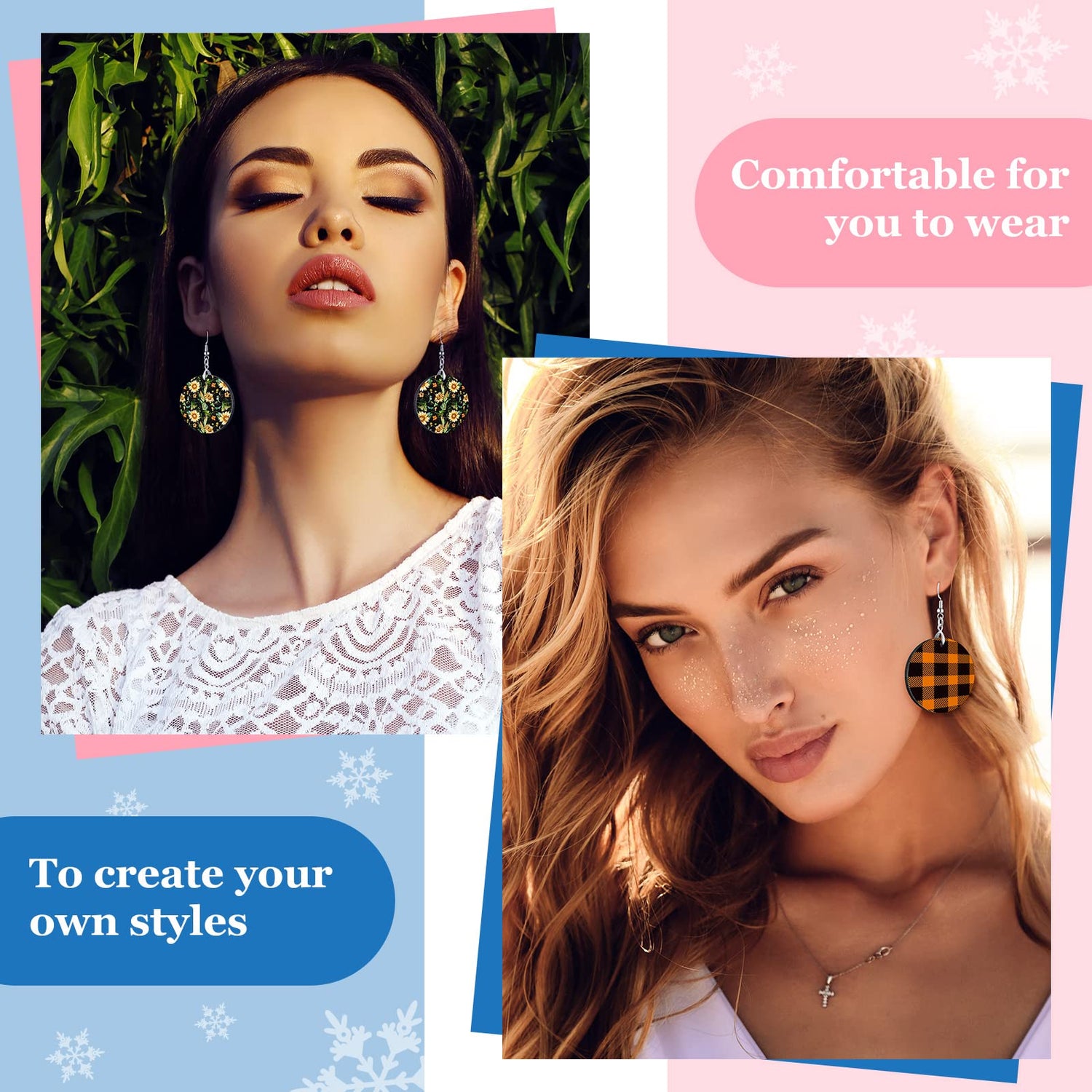 Yaomiao 36 Pcs Christmas Sublimation Blank Earrings Bulk Heat Transfer Earrings Unfinished Wood Transfer White Earring with Hooks for DIY Jewelry Making (Round Style)