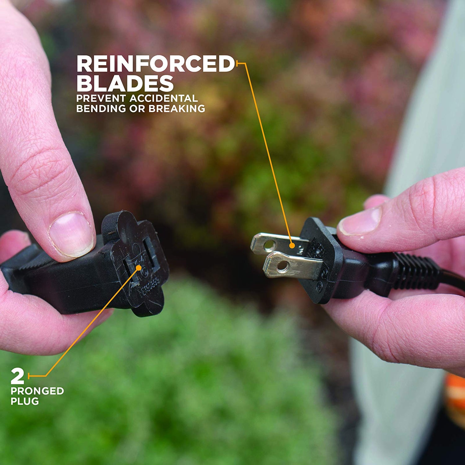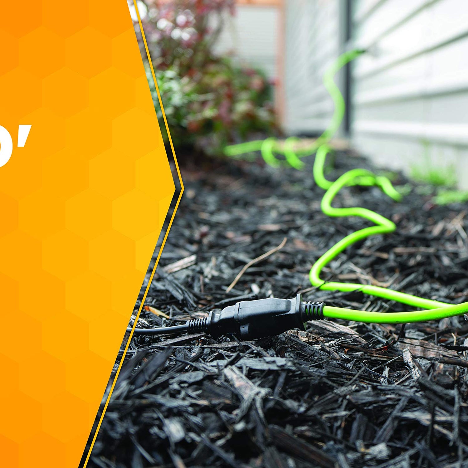 • LIGHT DUTY EXTENSION CORD; Perfect for all of your outdoor needs such as: powering your shop vac; weed wacker; bush trimmer; leaf blower; and any other landscaping appliances