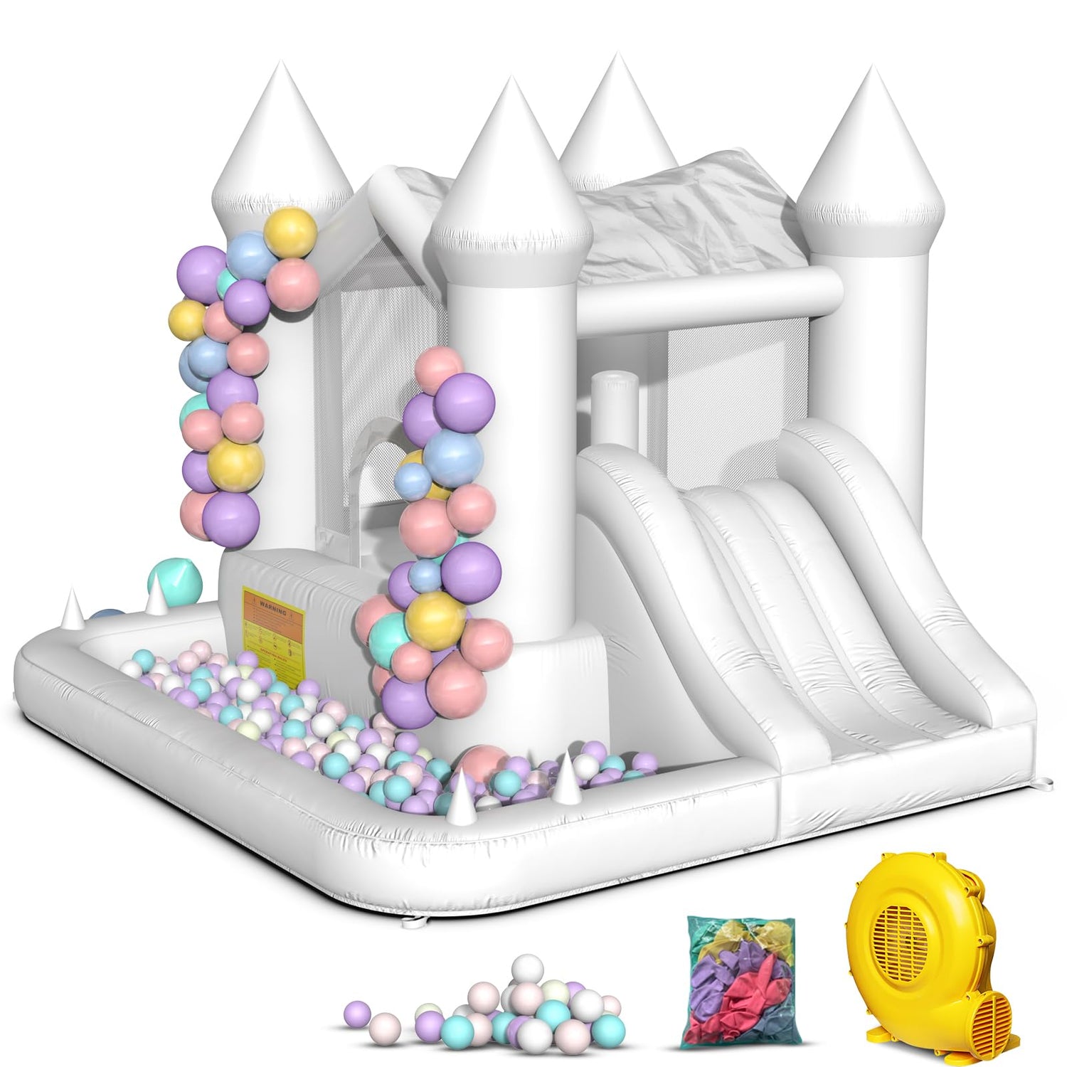 YARD White Bounce House, Inflatable Bounce House with Slide & Ball Pit for Kids 3-8, Bouncy House with Blower for Toddler Adult Indoor Outdoor Party, Wedding, Backyard, 9.5’x9.5’x7.5’ Bouncy Castle