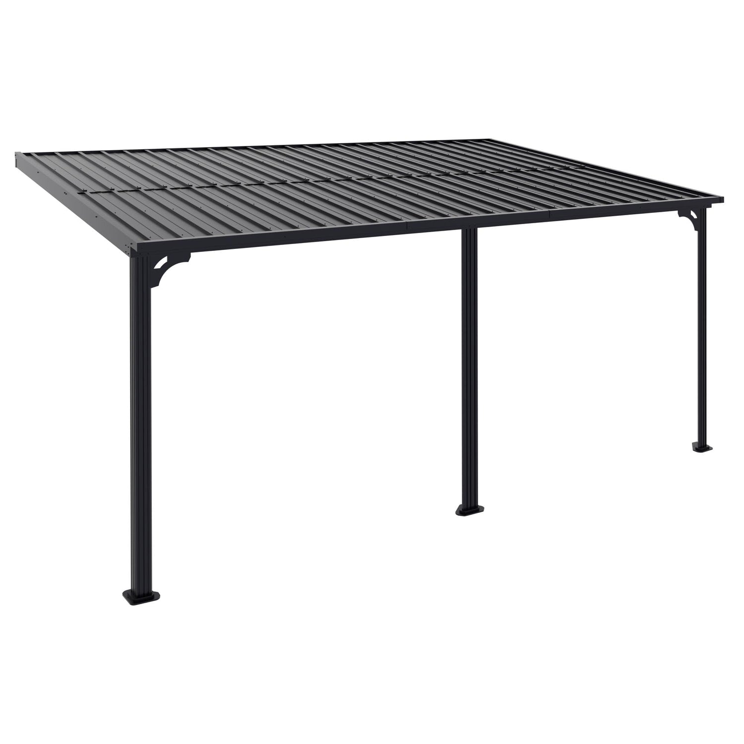 Yardenaler 10x14 FT Hardtop Wall-Mounted Gazebo, Outdoor Pergola Canopy with Aluminum Frame & Drainage Hole for Patio, Deck, Yard
